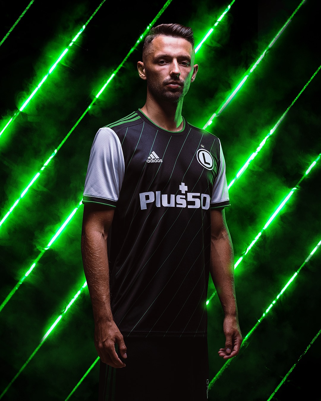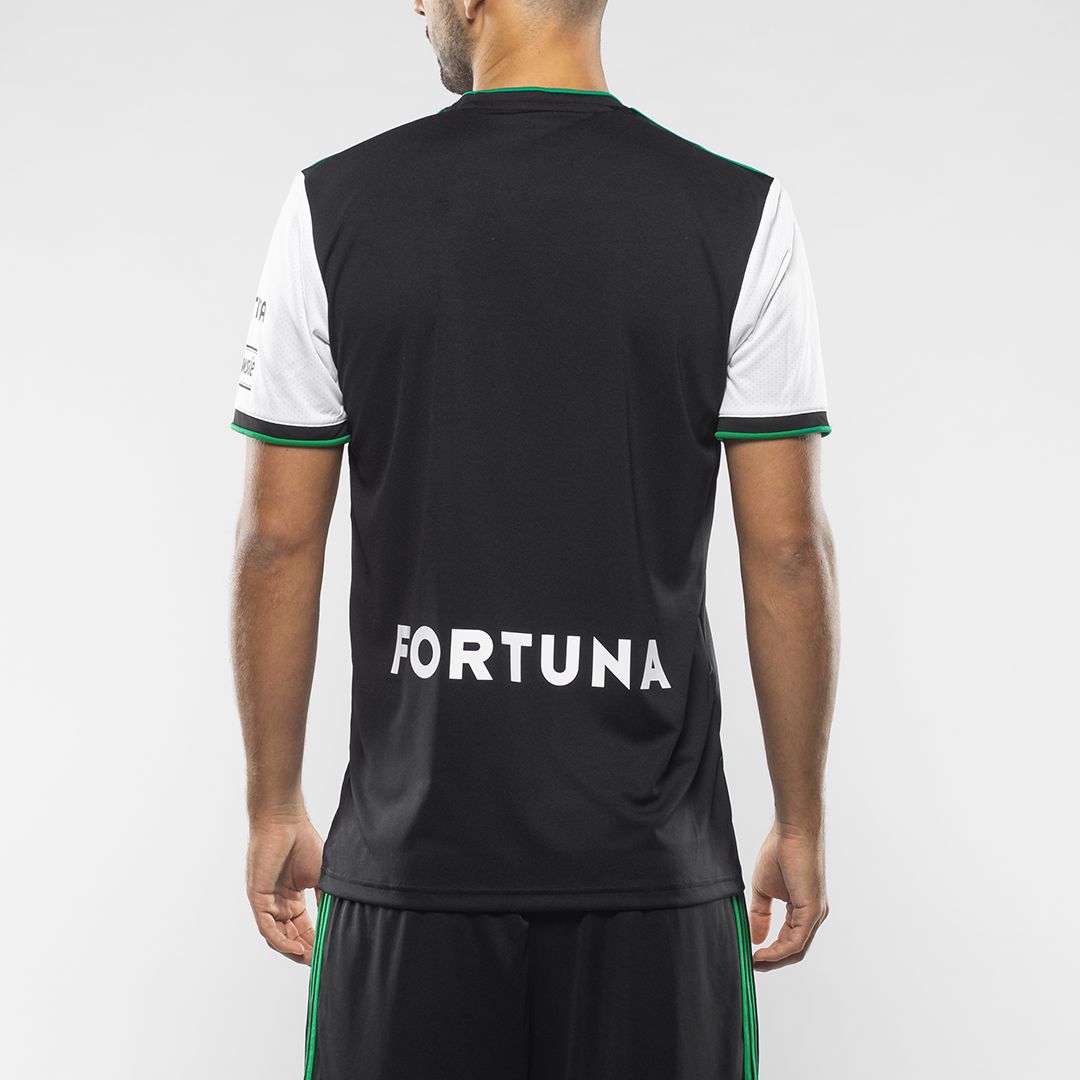 The Polish side’s new, nominally secondary change shirt by adidas is part of the German manufacturer’s “Primegreen” sustainability initiative and consists of a black trunk with white sleeves.