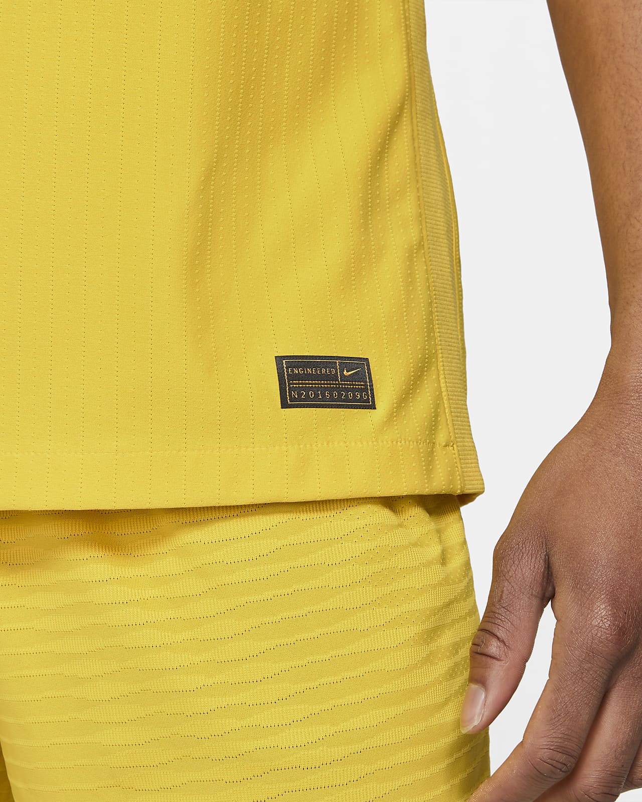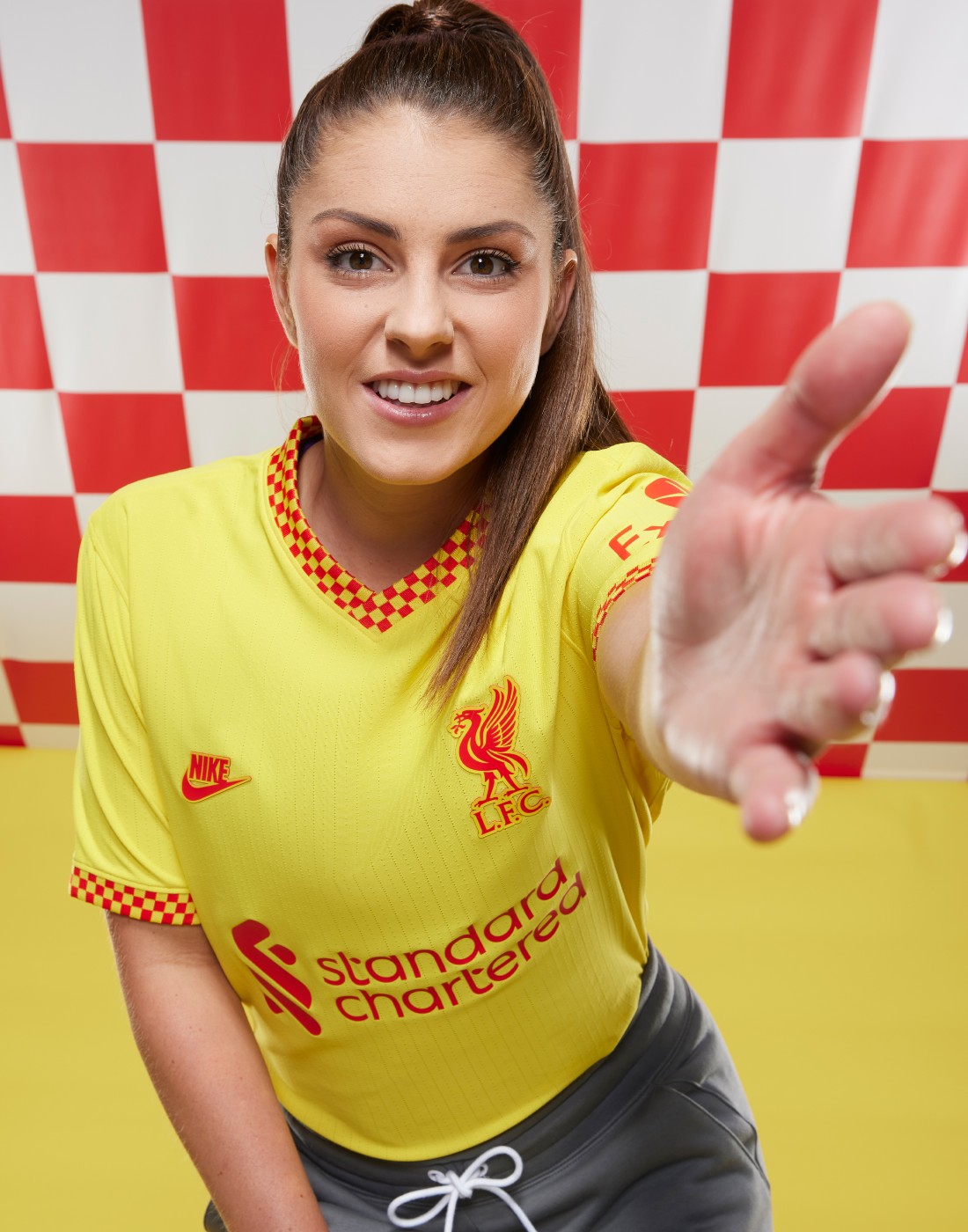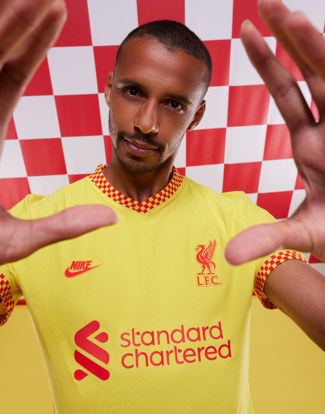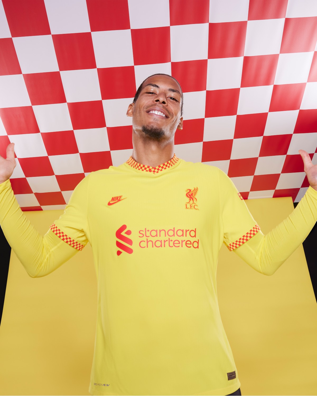 The bold yellow jersey is representative of the club’s rich history in the colour. The red-and-yellow chequered trim on the collar draws on the passion of The Kop and the flags that fill the stands, while pinstripes highlight the tight bond between the club and its community.