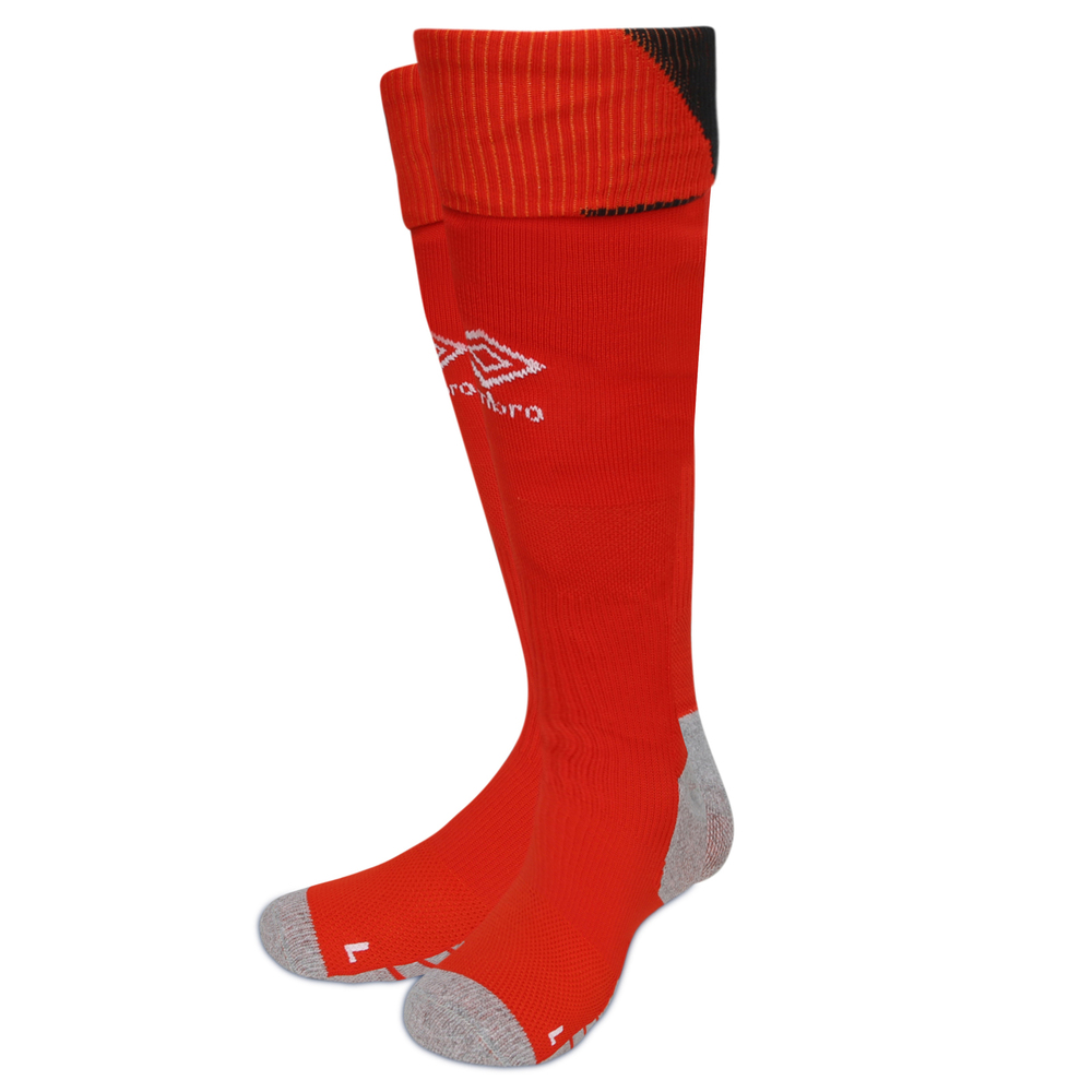 The neck is in contrast white with an insert, matching the front and back sponsorship branding, the Umbro chest logo and the triangles on the sleeves.