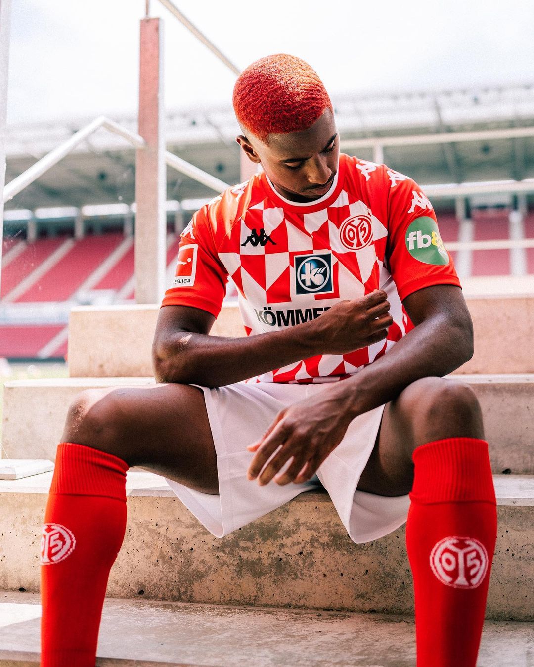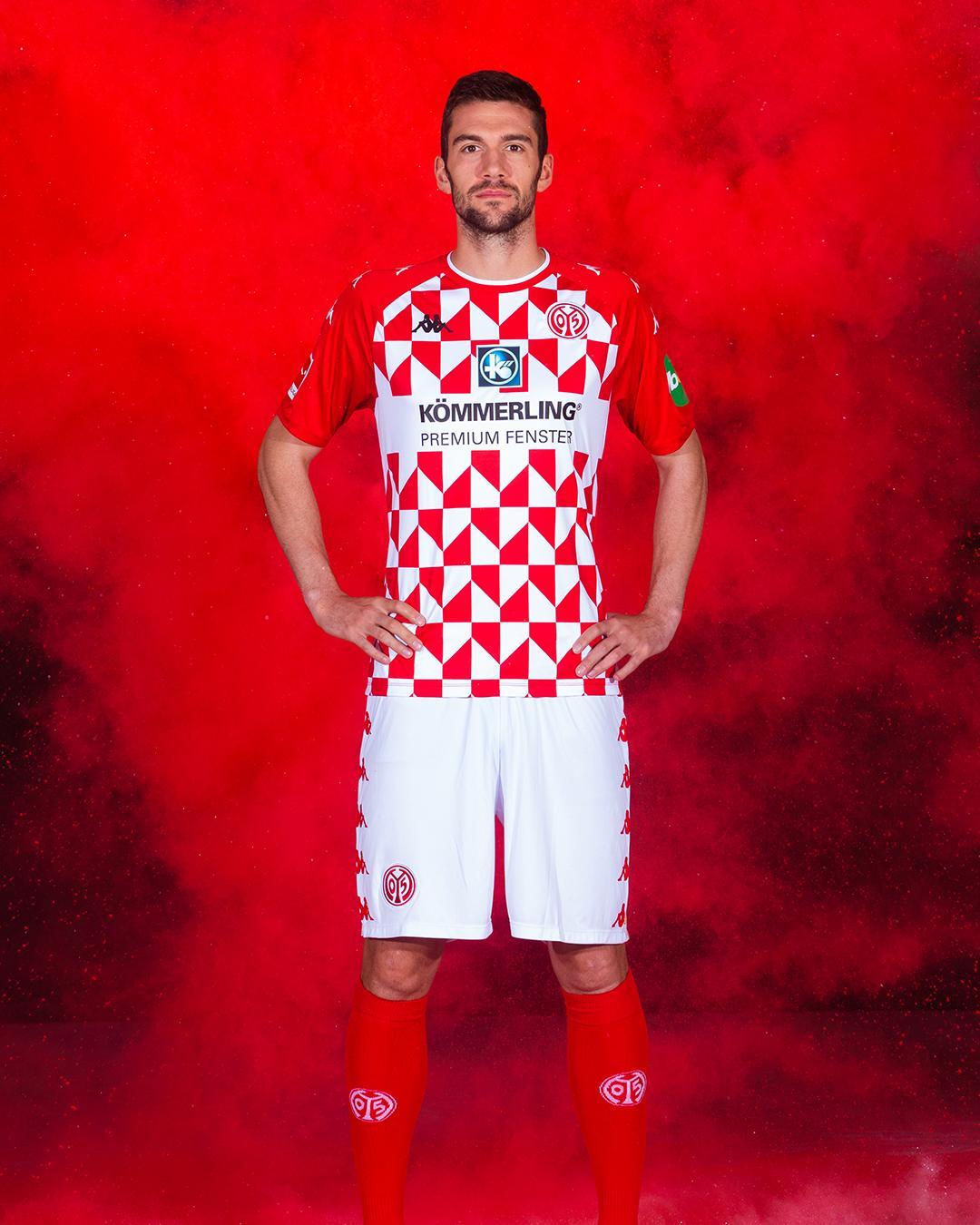 The new design by Kappa has, in effect, a stylised chequerboard effect which nods to the version worn in 1996-97, doubling up as a “M” (for “Mainz”) motif pattern.