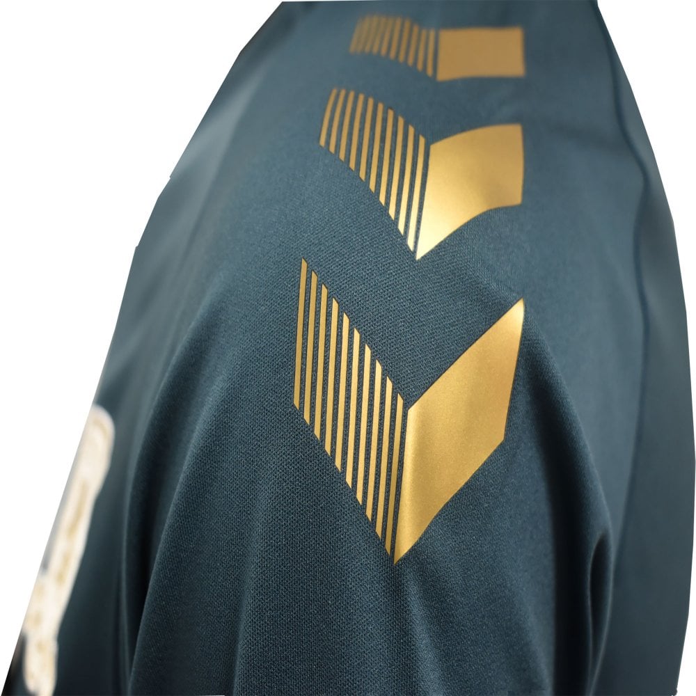 The shirts bear the logo of Principal Partner 32Red, while hummel’s trademark chevrons adorn each sleeve in gold.