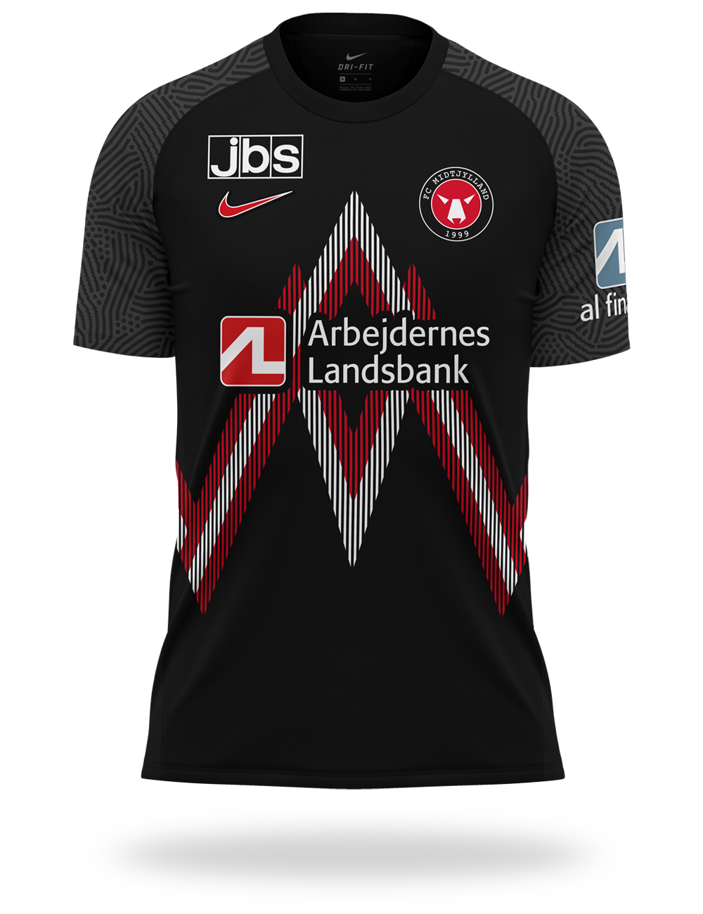The black Nike base of the new design is decorated with a stylised M (for Midtjylland) in red and white, which ties in with the colouring of the US manufacturer’s Swoosh logo, the crest and the principal sponsorship branding.