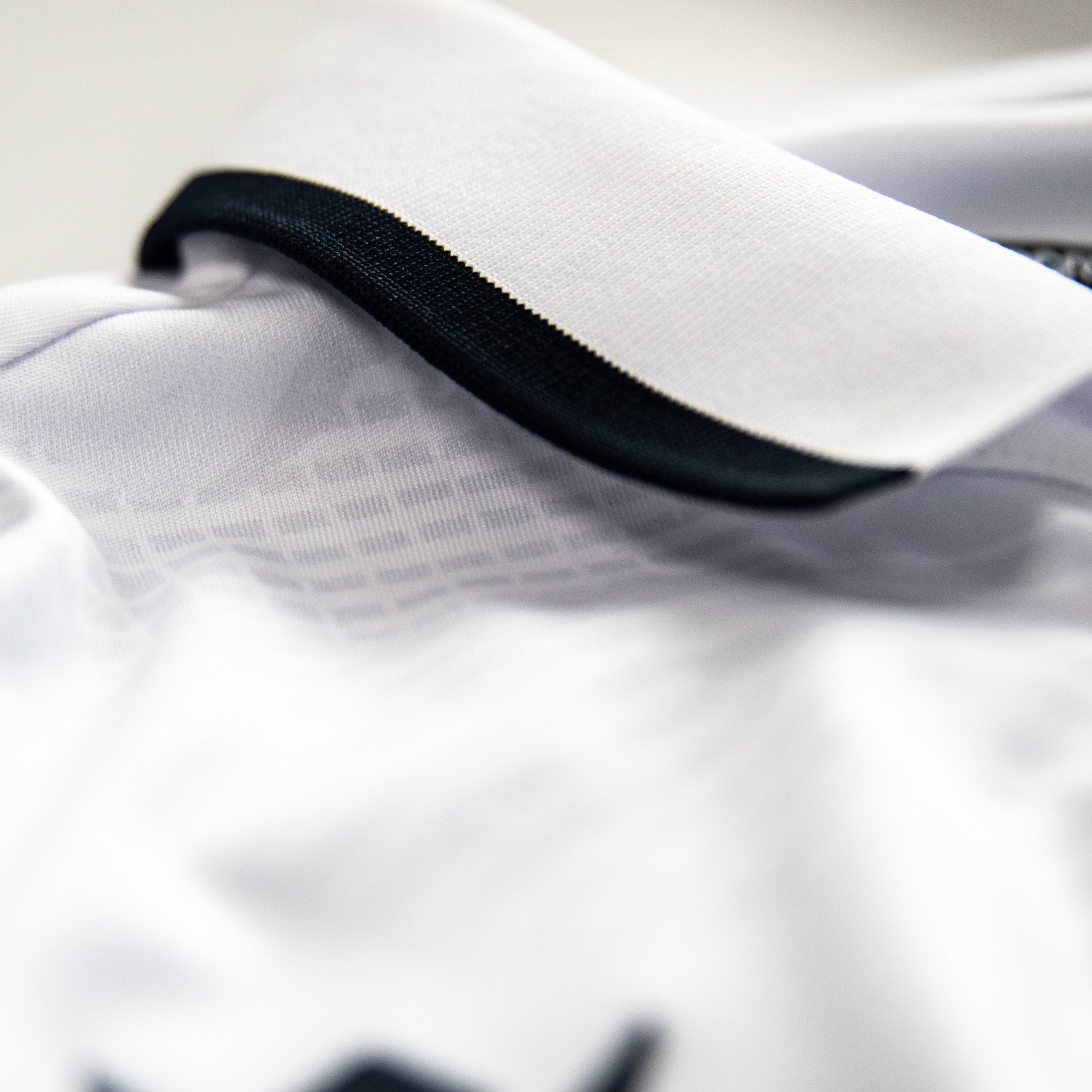 The backneck is personalised with a navy blue label with the club logo. Below, the foundation year 1885 stands out. The Macron Hero is in blue, silicone print on the right chest, while on the left, there is the patch with the crest of the English. The name of the club is embroidered in the backneck, also in blue.