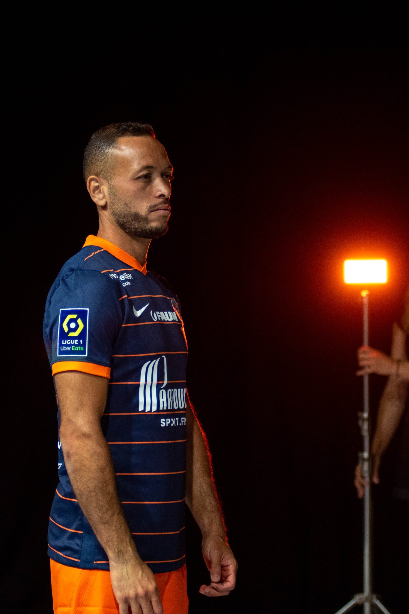 The 2021-22 primary design by Nike celebrates the tenth anniversary of La Paillade’s shock league title win in 2011-12 with a detail under a full-colour club crest - overlaying a navy shirt with thin, orange, horizontal stripes.