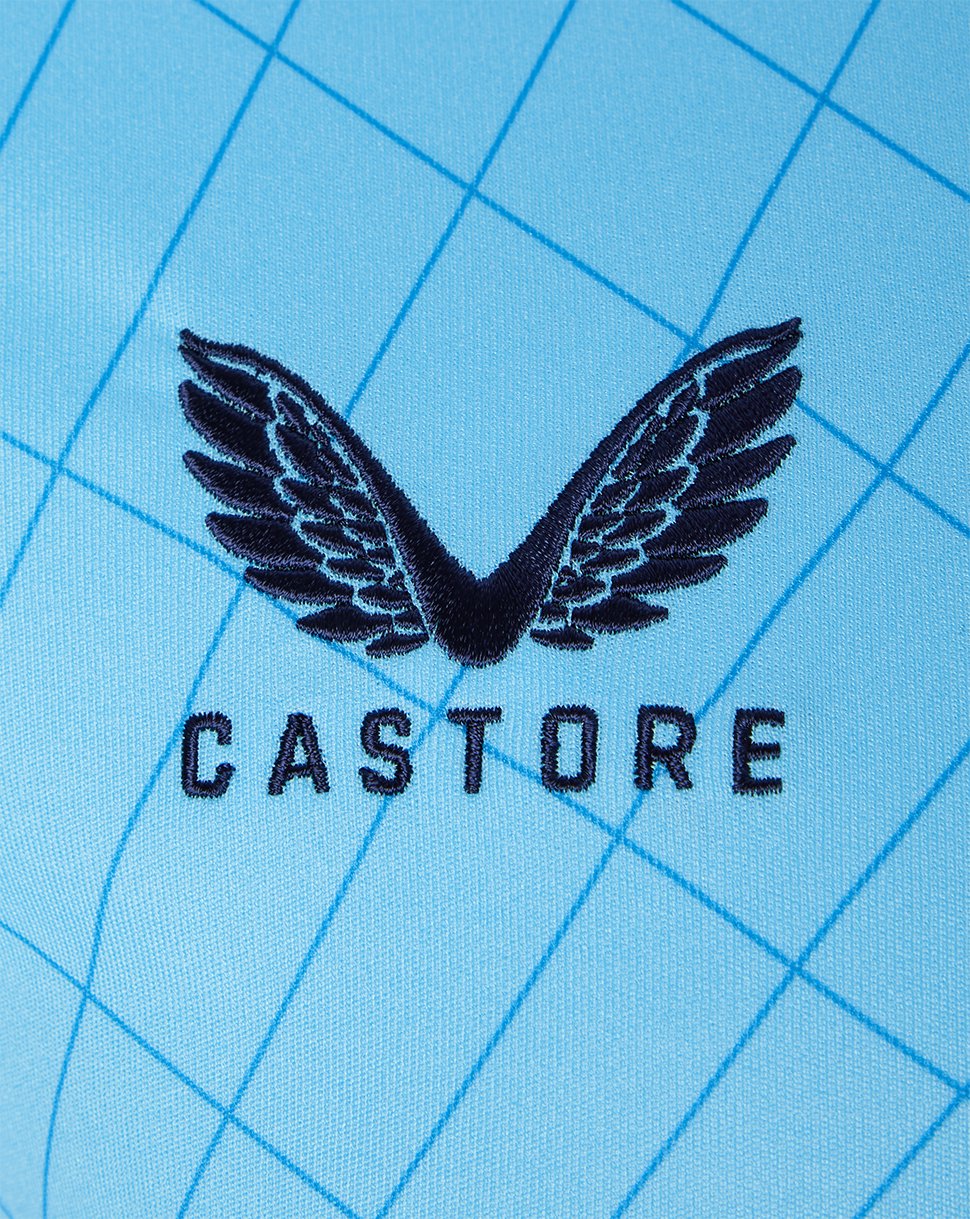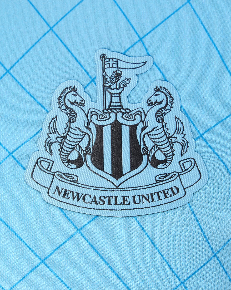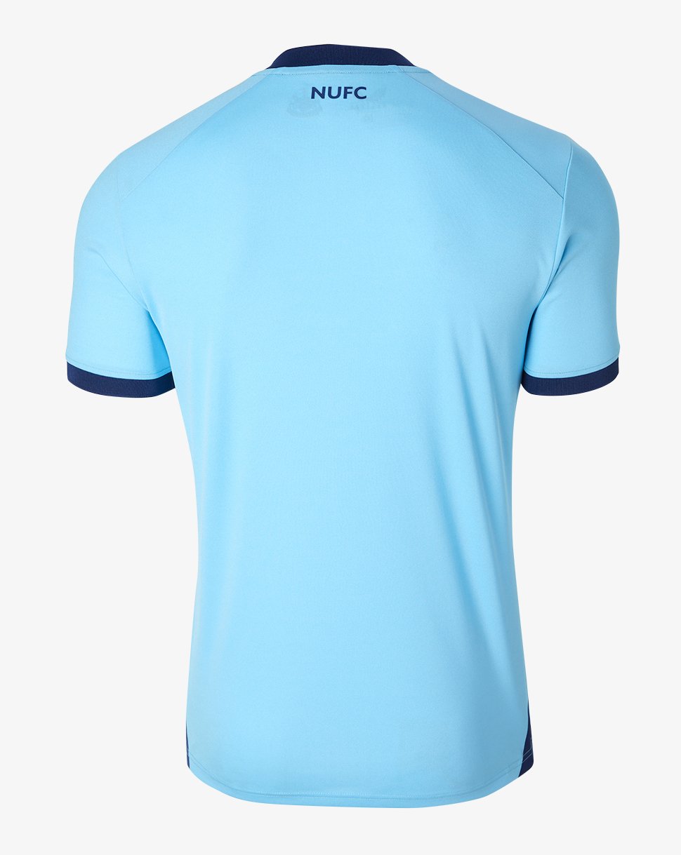 The design takes inspiration from the most iconic shirts of the past with a printed symmetrical navy-blue graphic, set-in sleeves, rib cuffs, an upper back panel with tipping that displays NUFC lettering to inspire every fan, and Castore branding on the front.