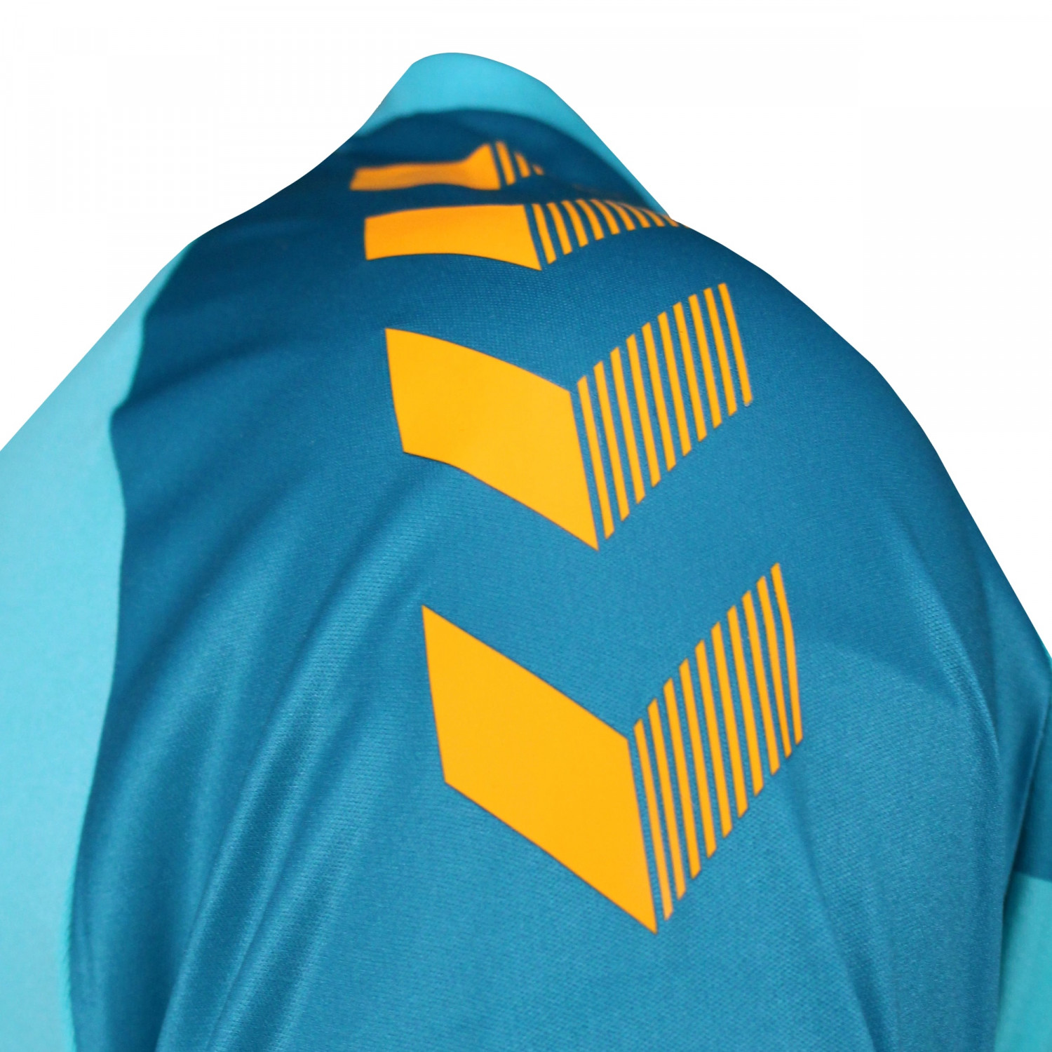 The shirt uses Hummel’s ECO8 technology, ensuring each shirt is manufactured from high-performing polyester produced from up to eight recycled plastic bottles.