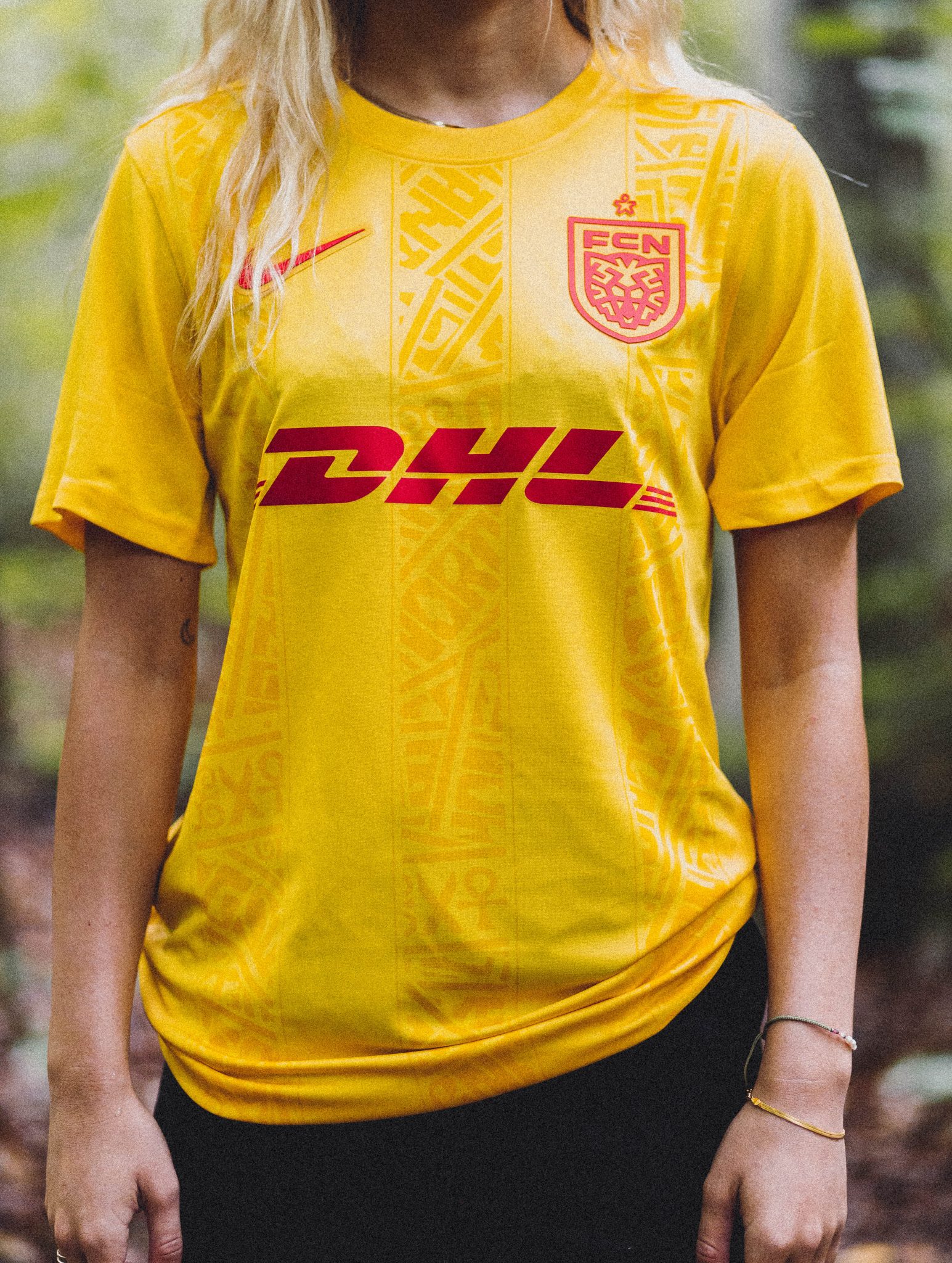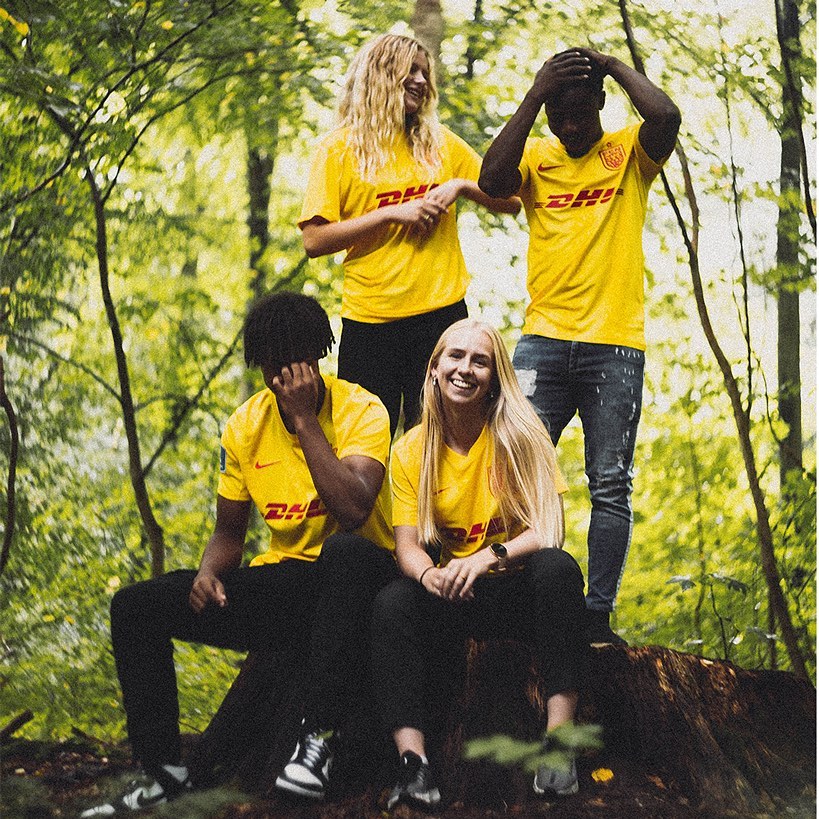 While main shirt sponsor DHL has allowed its logo to have its usual boxed form jettisoned, the 2021-22 secondary shirt - worn with matching yellow shorts and socks - has a colourway which can’t harm the courier’s brand awareness.