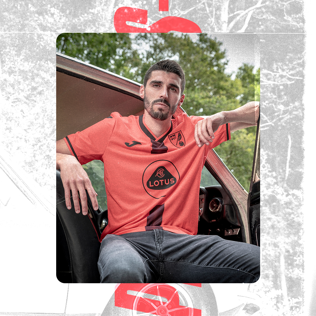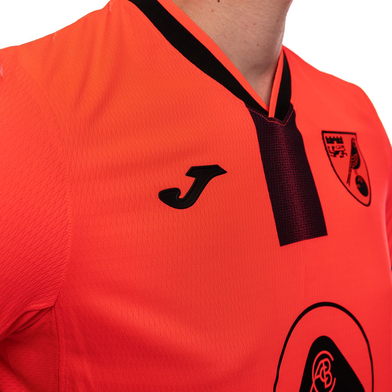 The strip dons a fluorescent coral colour and incorporates a vertical black stripe detailing through the centre of the front of shirt that also follows through at the top of the back of shirt.