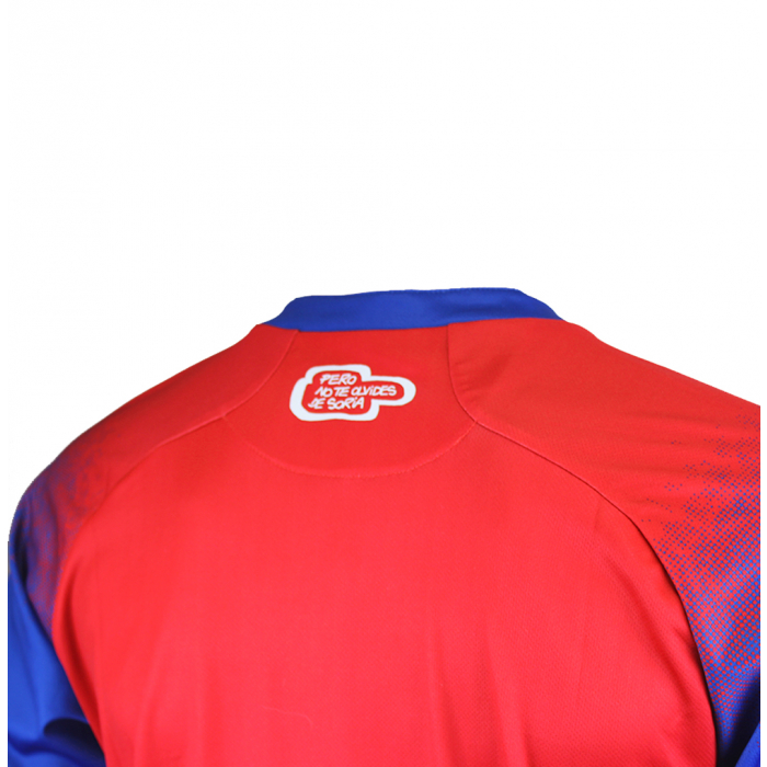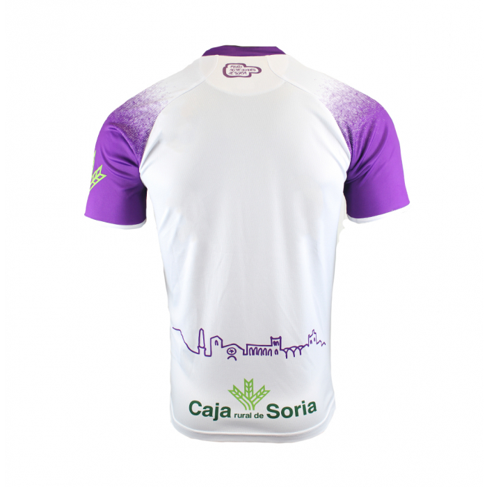 The Home shirt features several verses of Antonio Machado’s poem, Campos de Soria, on the front, with a stylised skyline by Munanguerrix on the back, paying tribute to the club’s home via depiction of its landmarks.