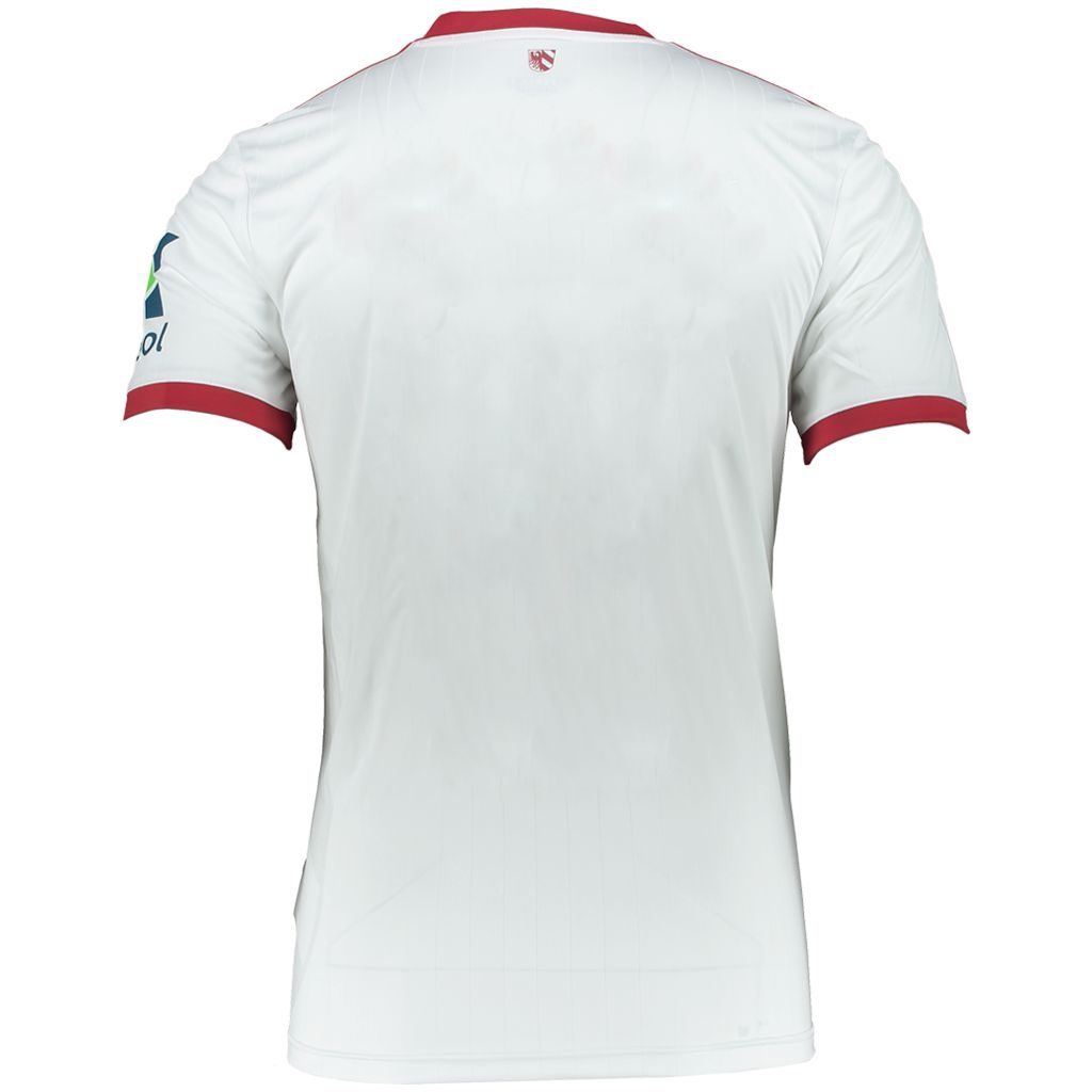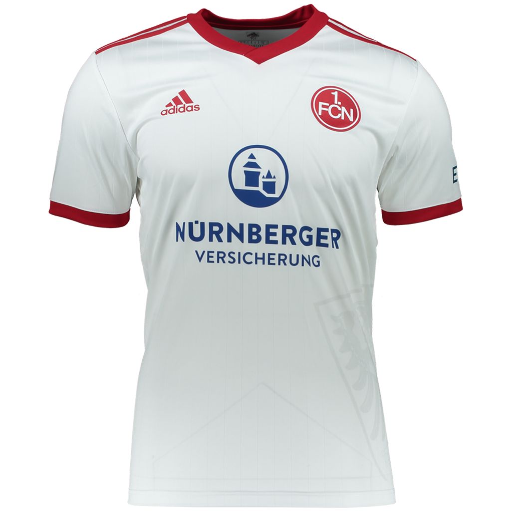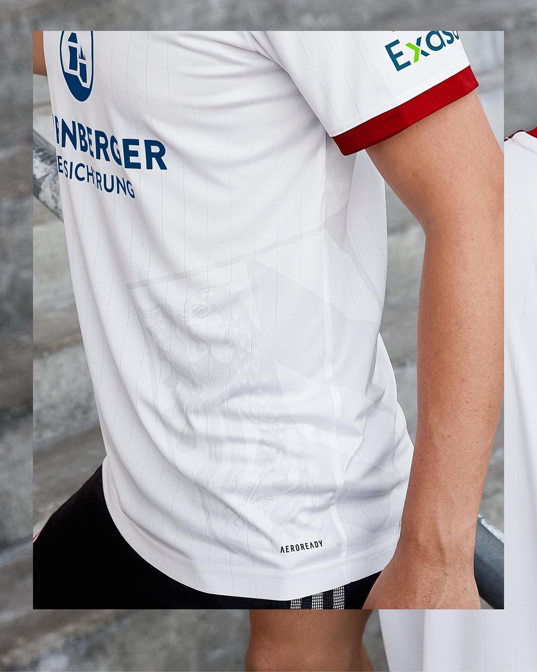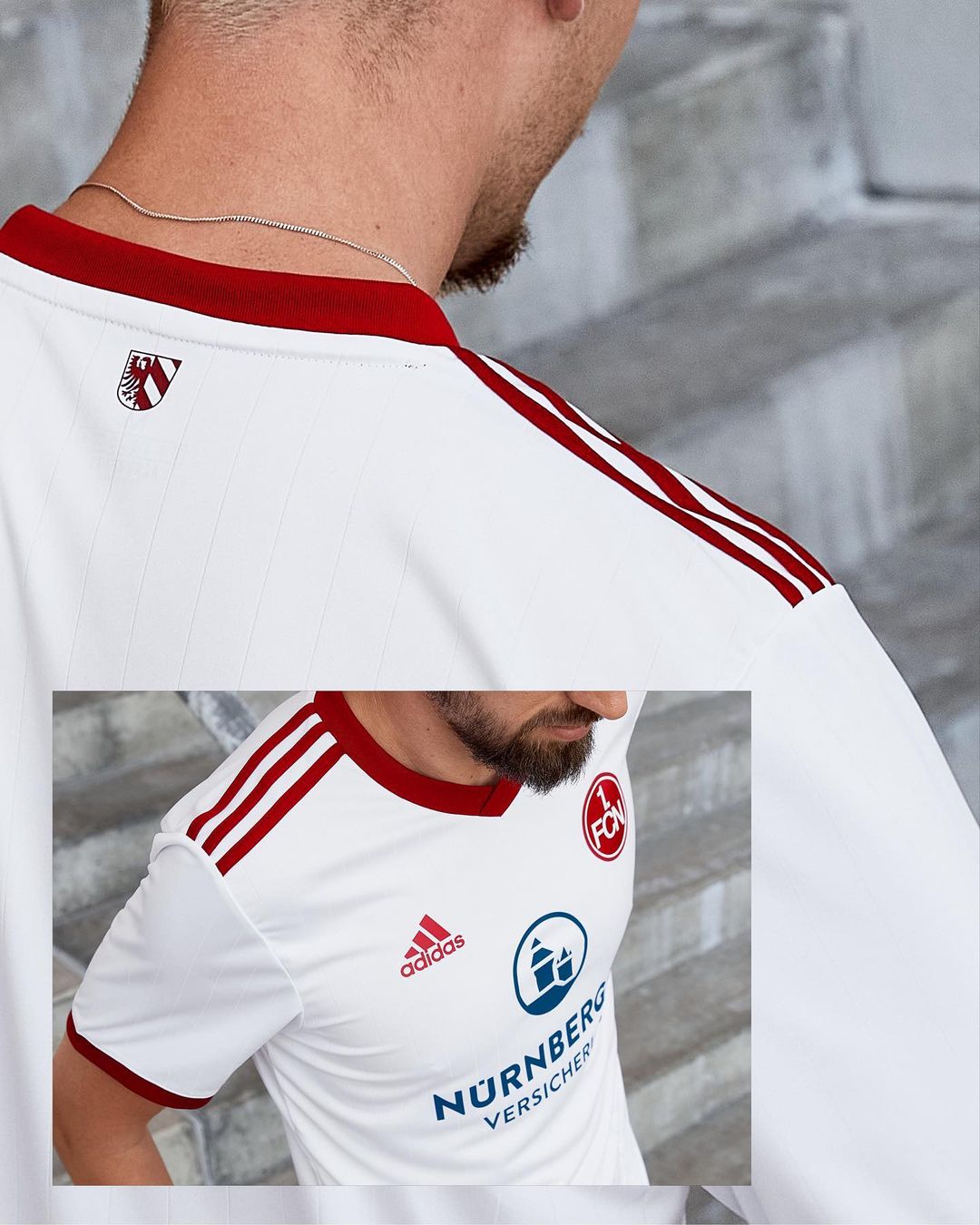 The German 2. Bundesliga side’s secondary shirt for 2021-22, by adidas and delivered by 11teamsports, is in white with red overlapping v-neck, cuffs and adidas branding.