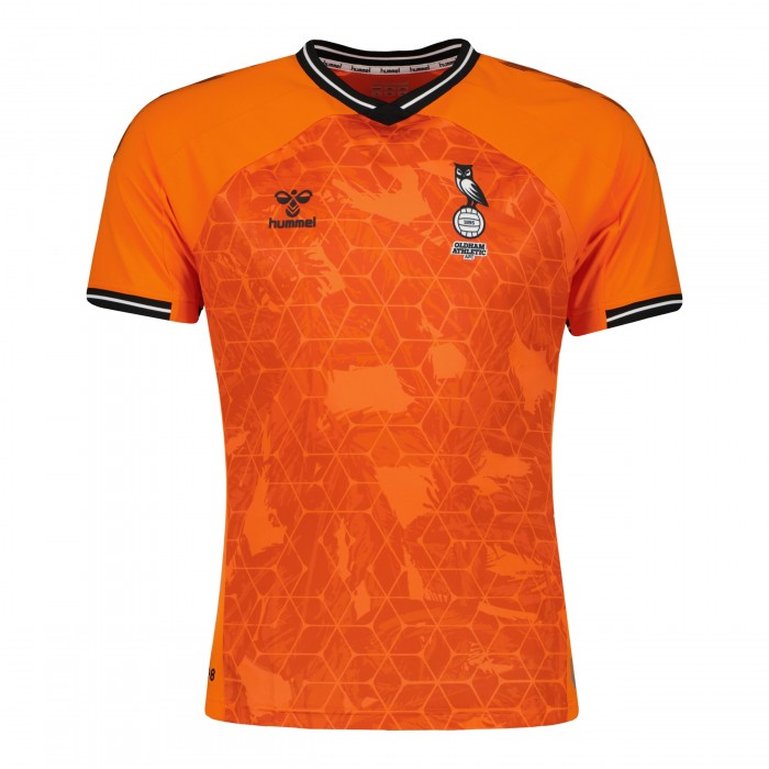 The tangerine shirt is based off the classic fan favourite colour with black accents. The front sublimation is a unique owl feathered repeat design broken down by layered hexagons, the patterned shape being chosen by supporters with 53% of a vote.