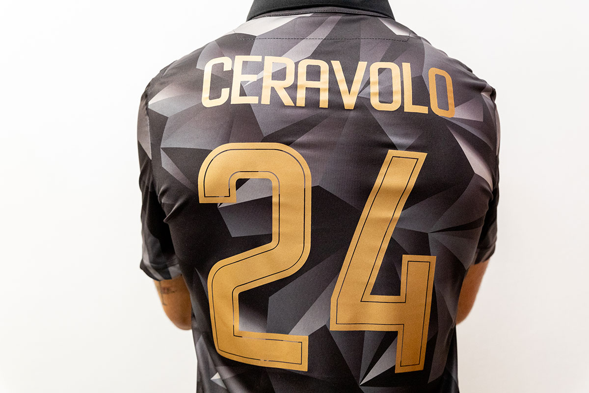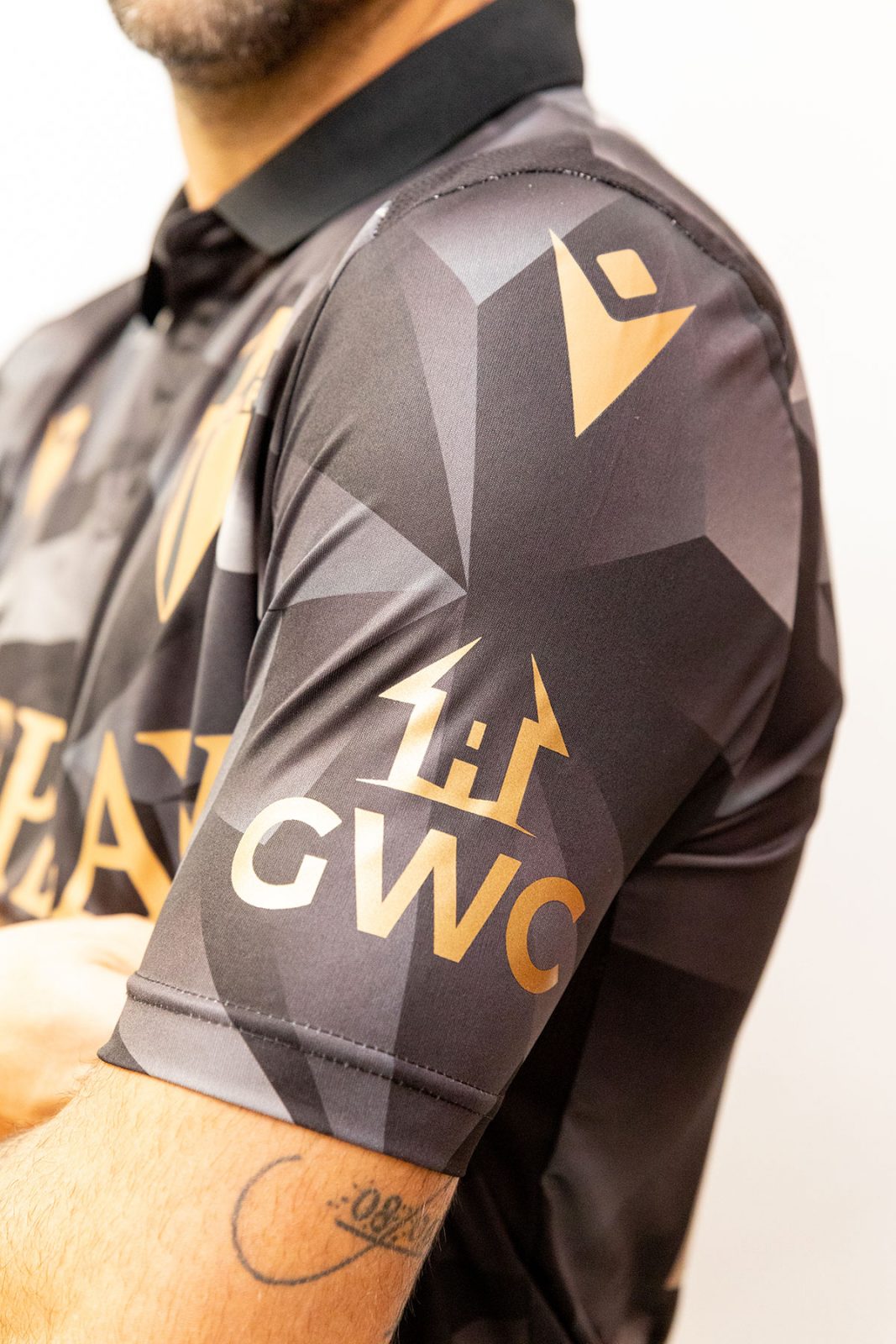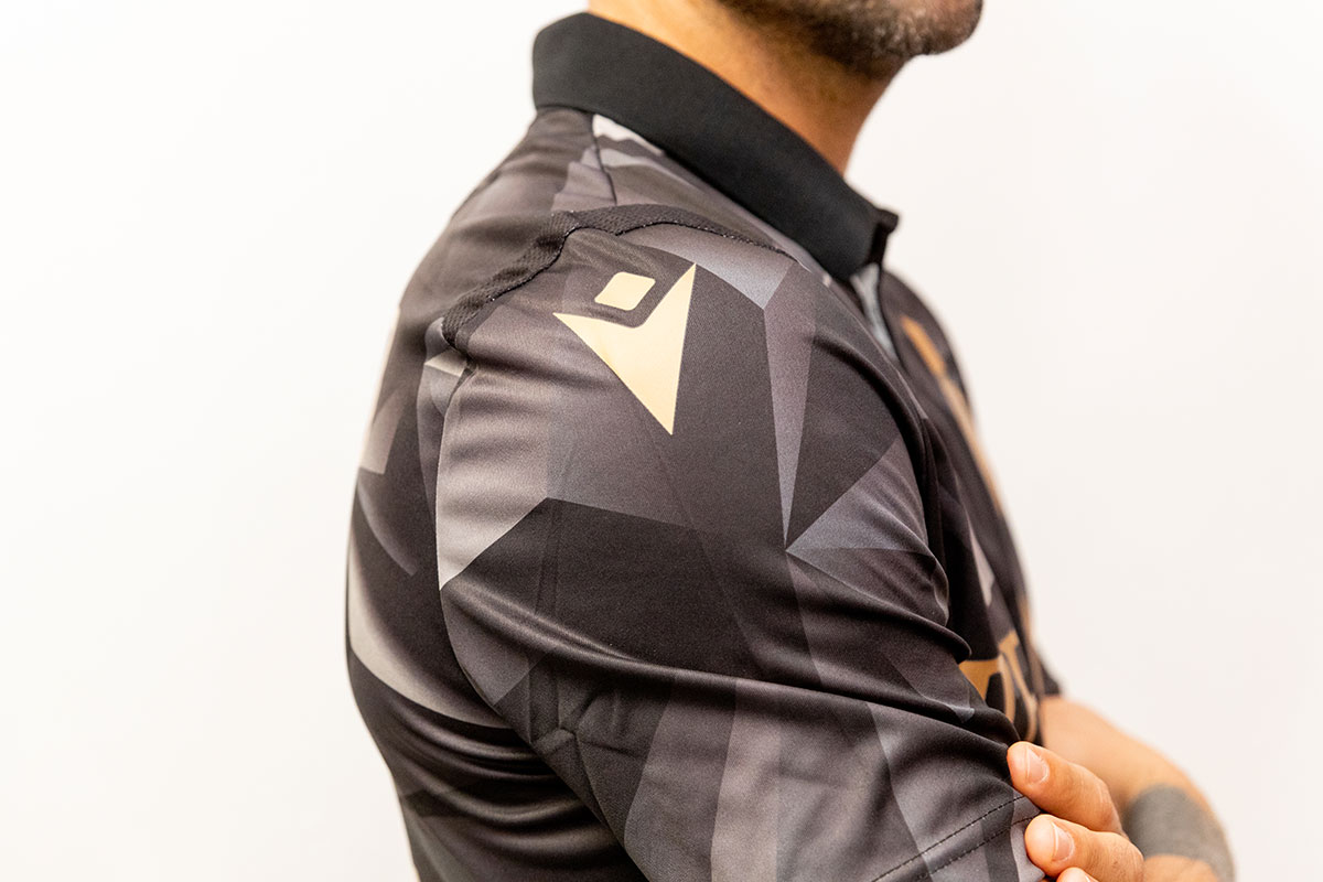 Designed by jeanswear brand Replay and produced by Macron, the shirt is patterned in grayscale and embellished with gold detailing.