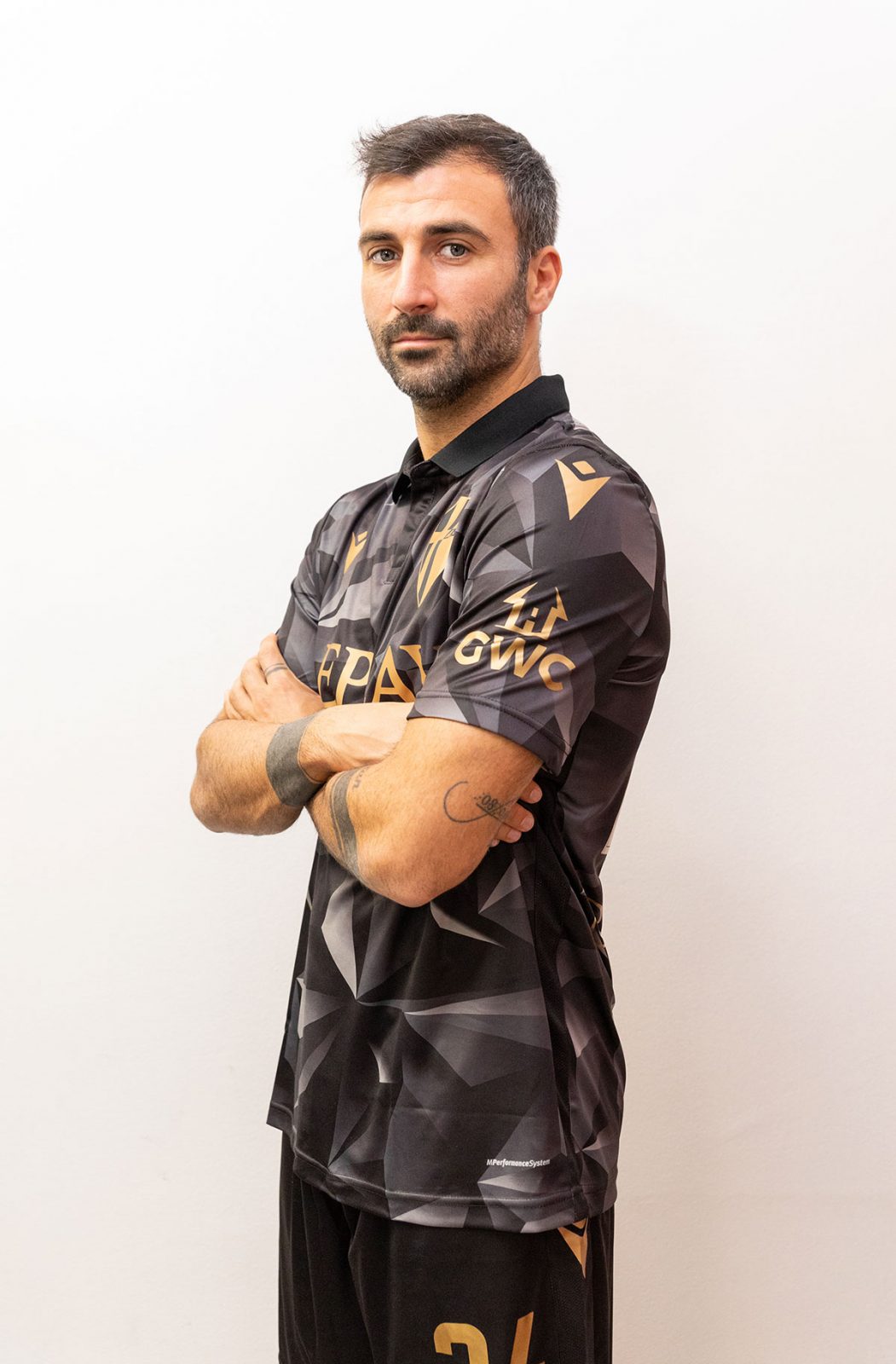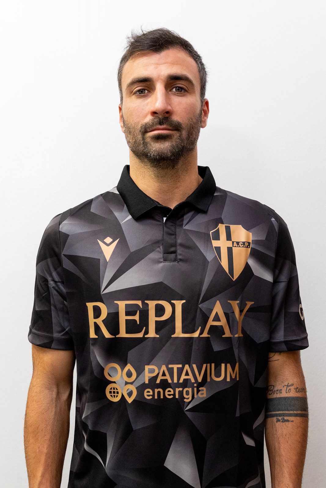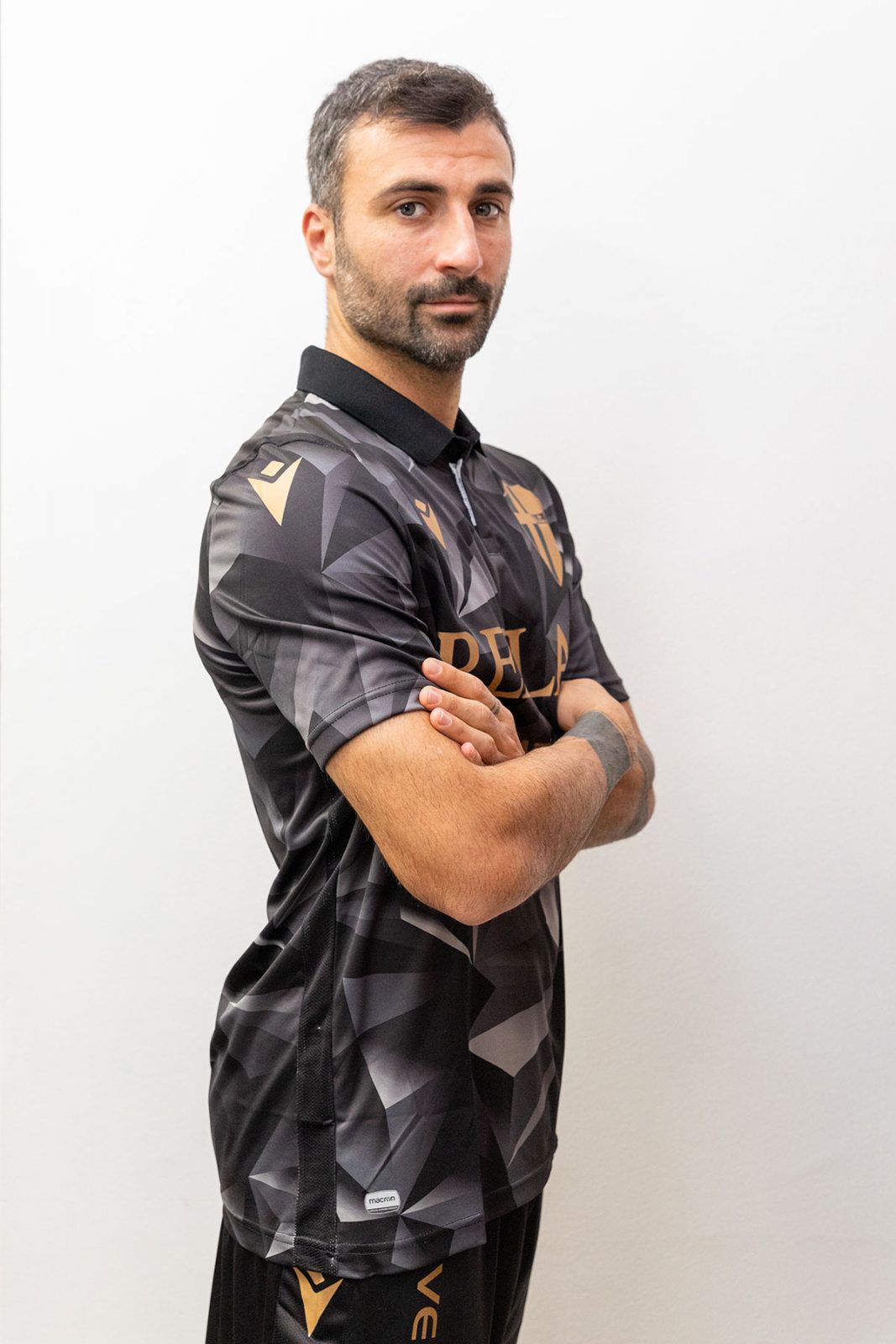 Designed by jeanswear brand Replay and produced by Macron, the shirt is patterned in grayscale and embellished with gold detailing.