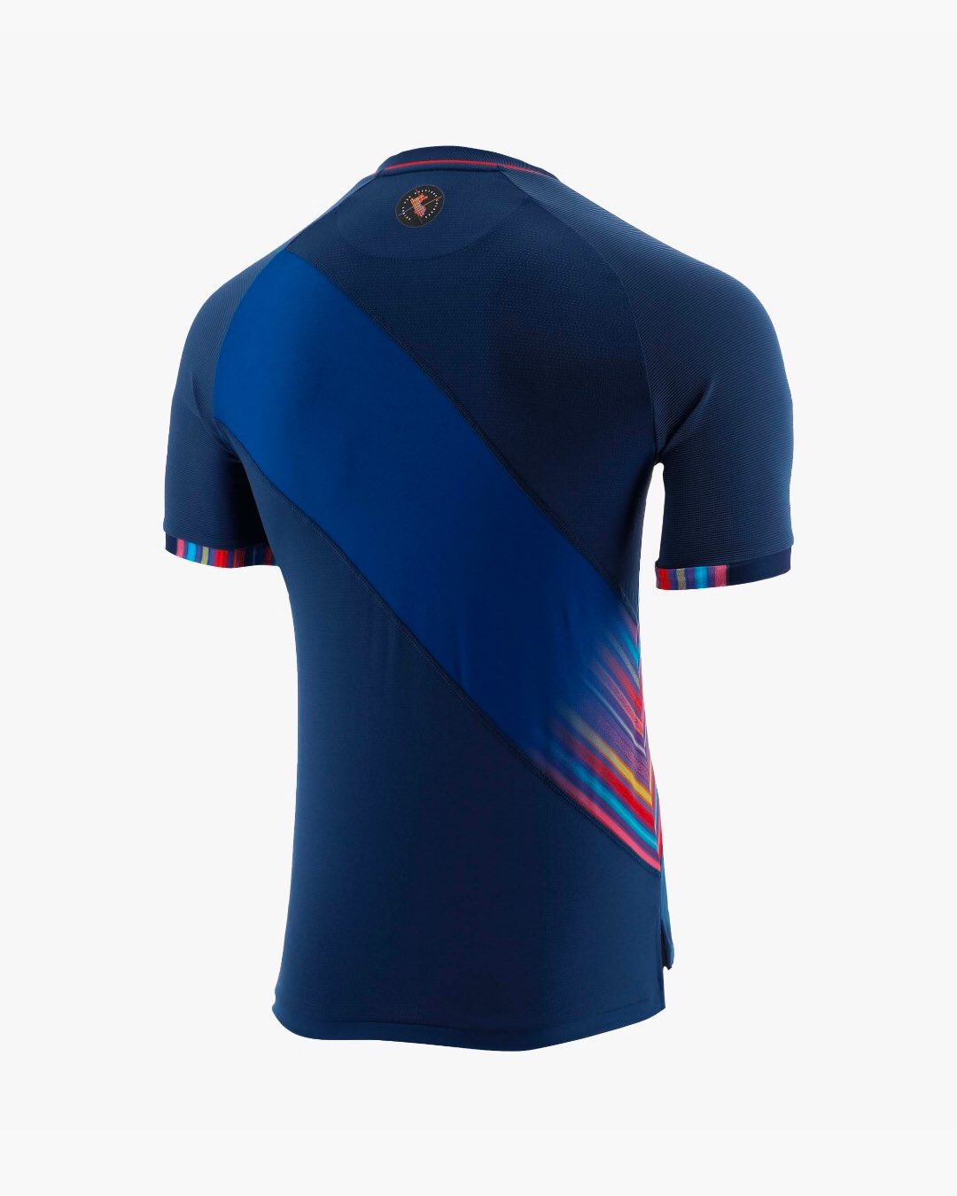 Expected to endure as the second choice design until 2022, this untraditionally coloured item follows the template of the home version, swapping out white for the deep blue and the red sash for a royal blue tone fill.