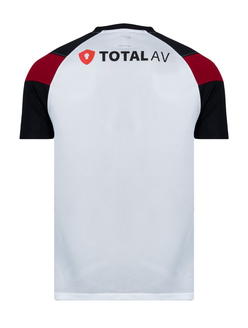 The 2021/22 shirt contains a black v-neck collar, which is taped for a smooth feel against the skin.