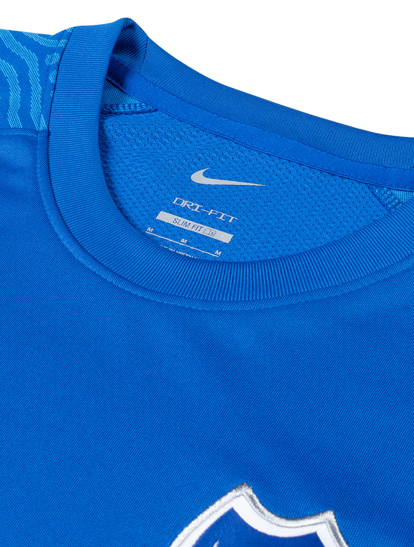 The latest strip – which has been designed by Nike – features the traditional colours of blue shirts, white shorts and red socks.