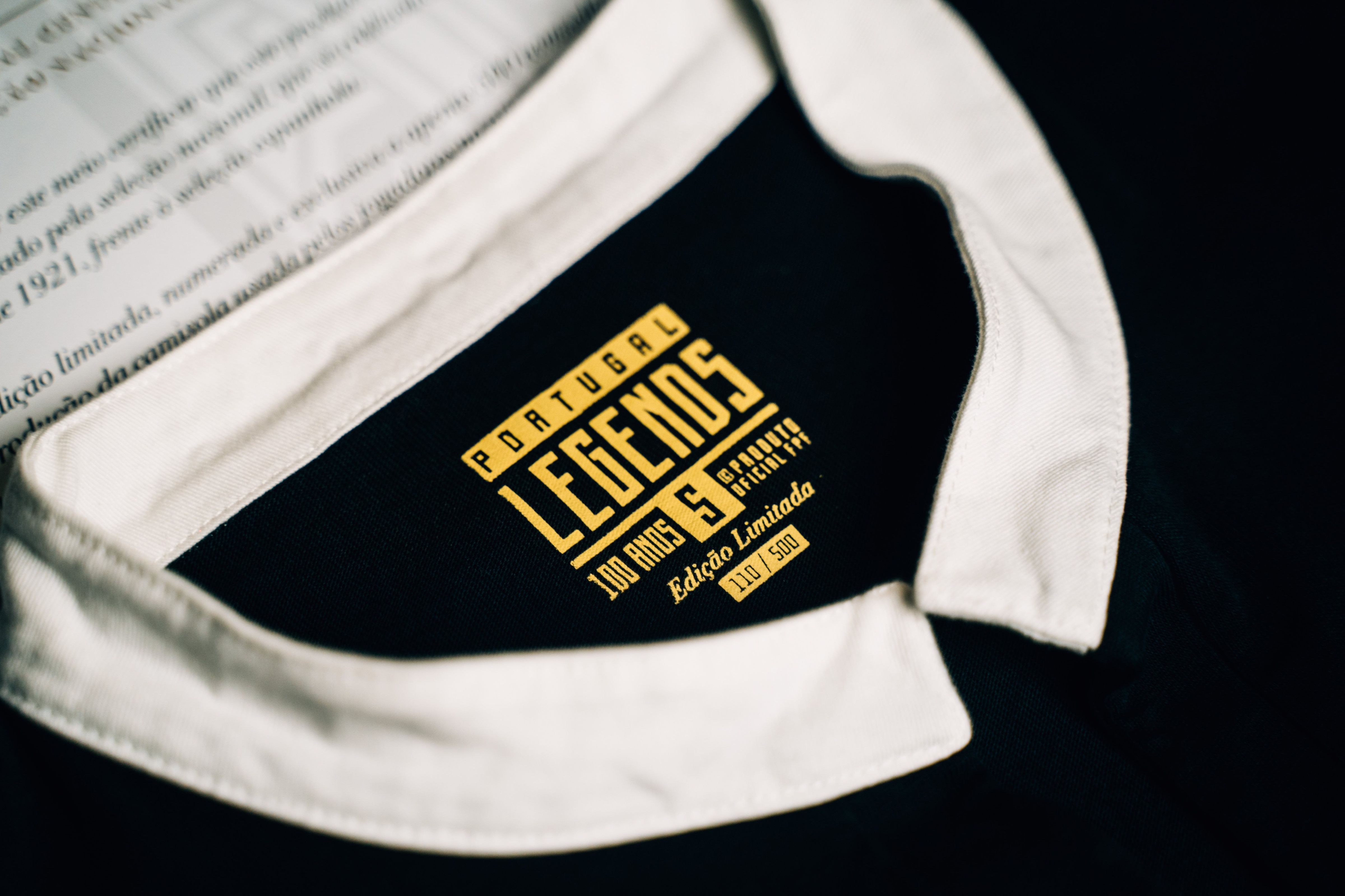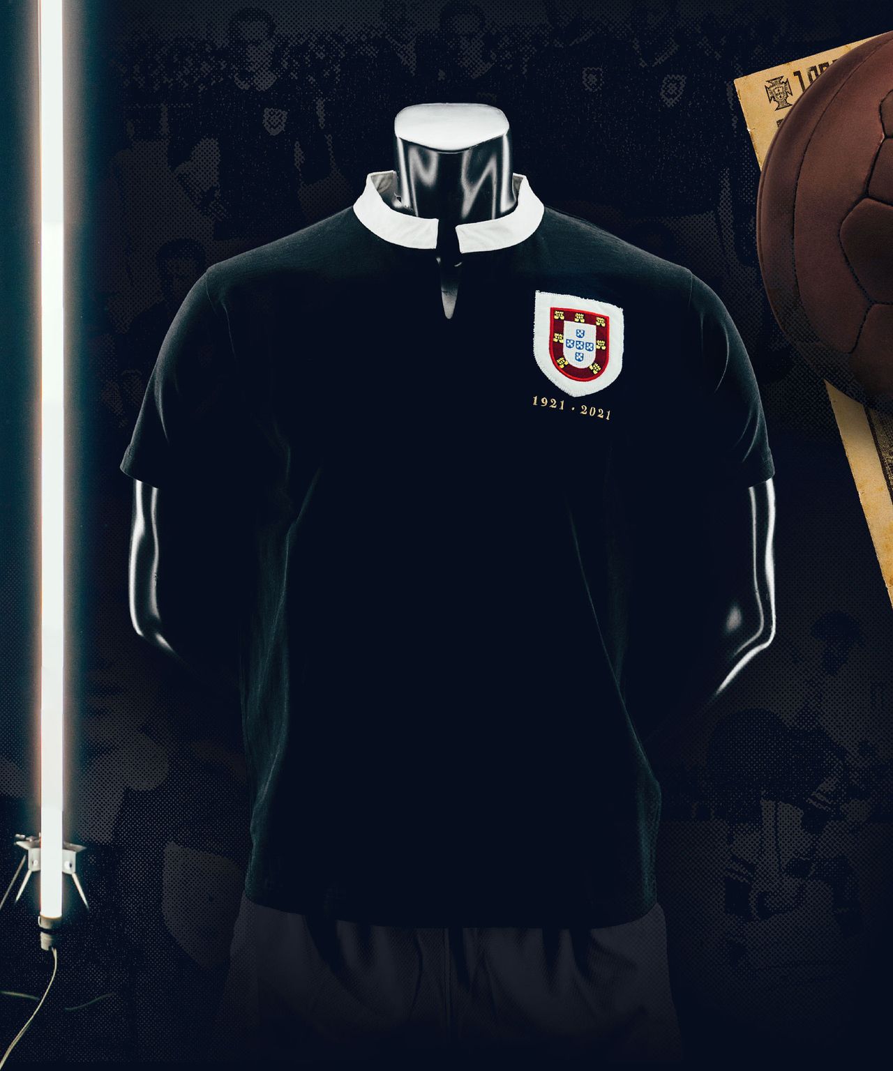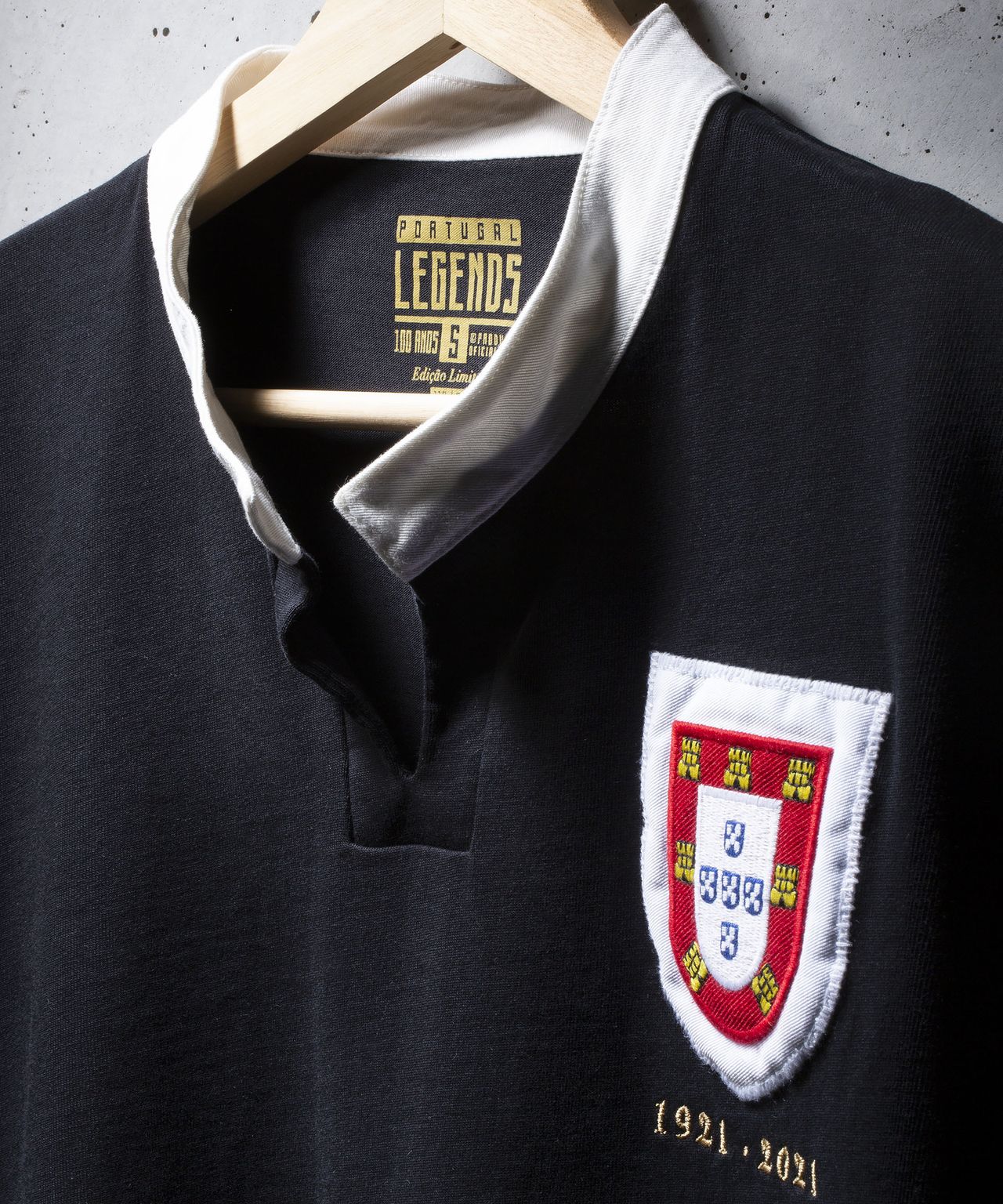 The black shirt with white neck trim is a modern approximation of the version worn when the representative side for the now Federação Portuguesa de Futebol - the Portuguese Football Federation - took on Spain in Madrid in 1921.