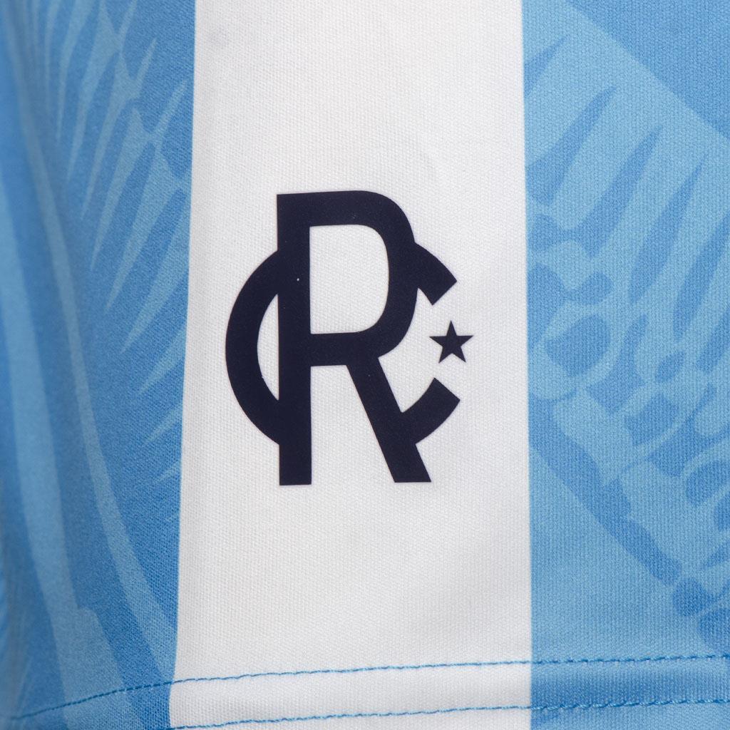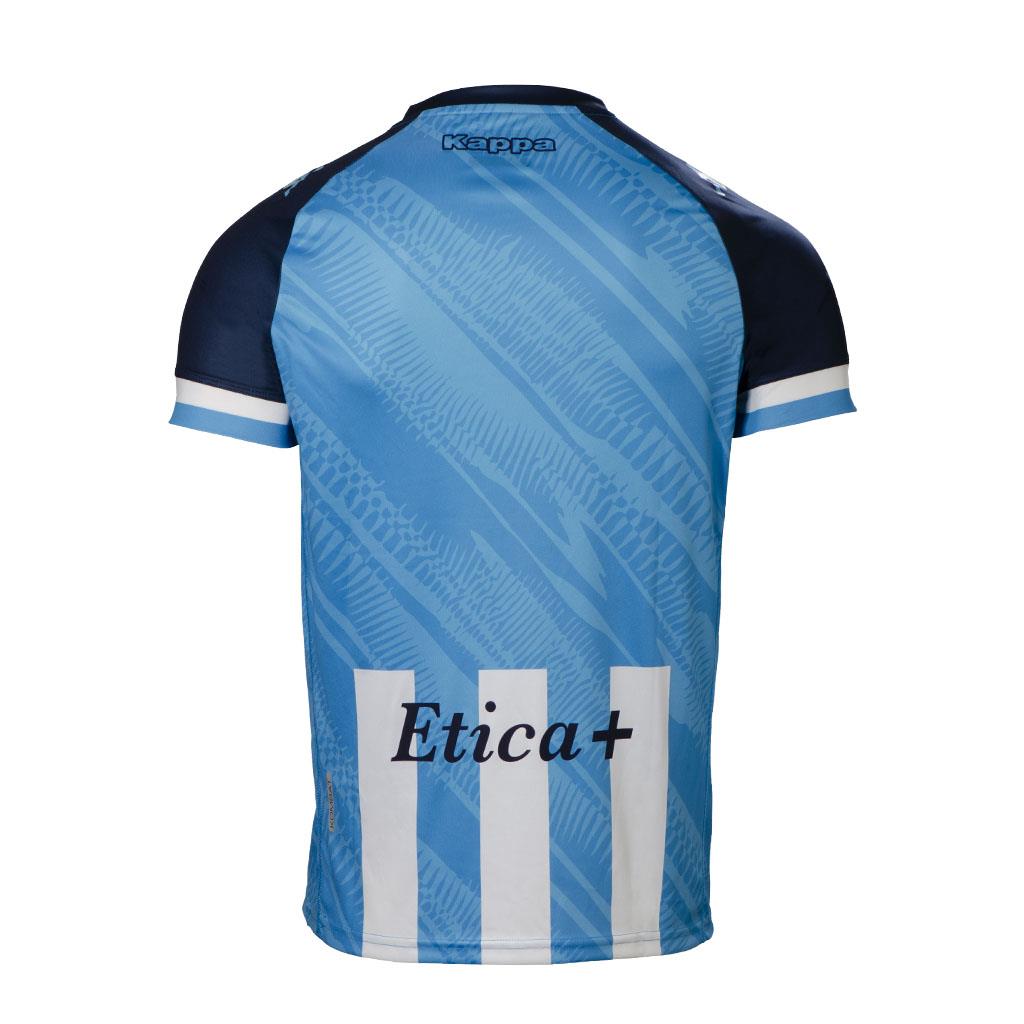 The sky-blue base with patterning is embellished with three, white vertical stripes stopping halfway up the front of the trunk, with the club name also contrasting in white, very much à la recent Puma Third designs.