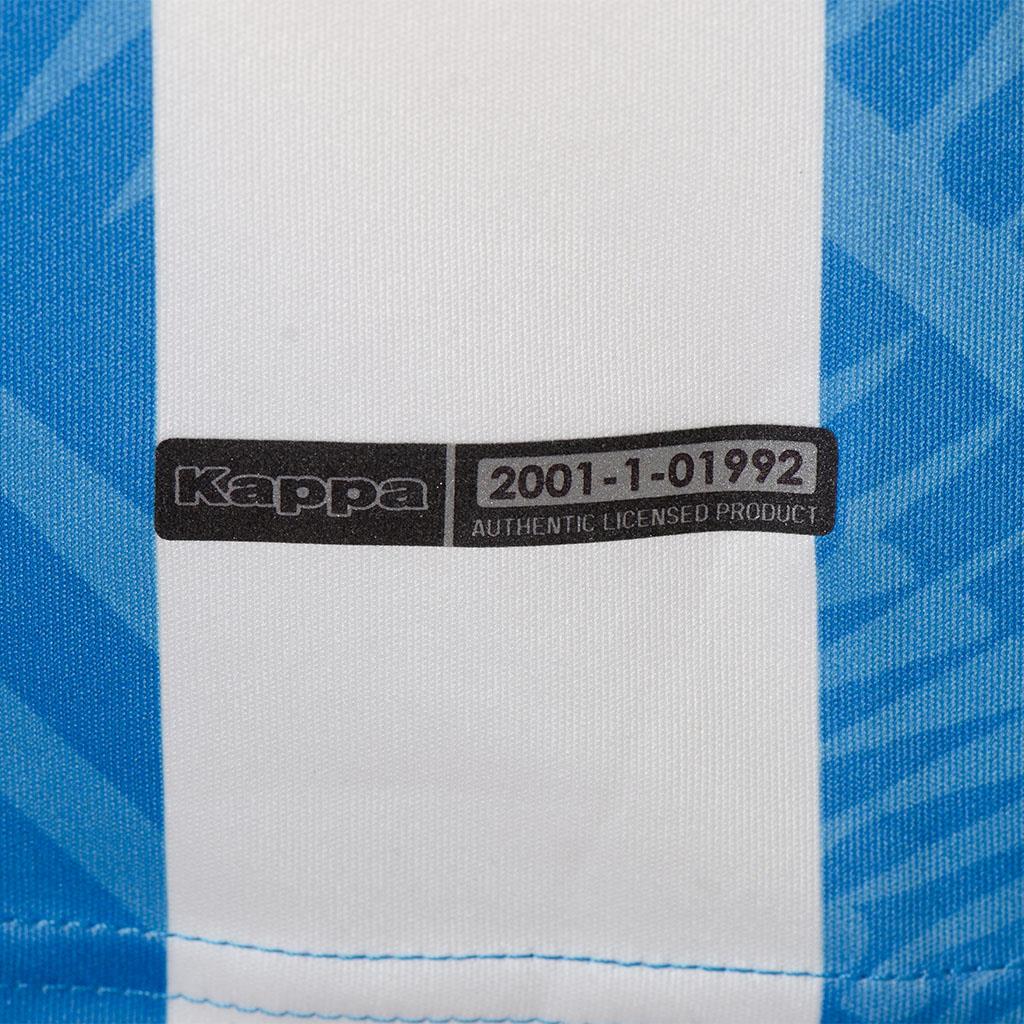 Unlike many of those releases, the club crest is present and correct, and in full colour, while Kappa’s Omini logos contrast in navy on the chest and sky blue on the shoulder portion of the navy raglan sleeves.