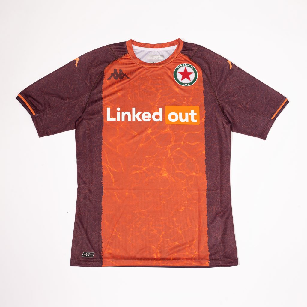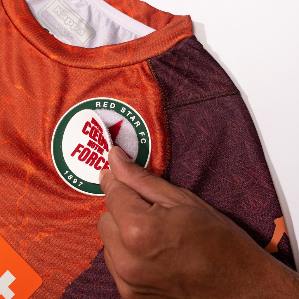 Coloured in orange and deep red - to suggest a negative image of the Home version - the texture-patterned base, like the primary equivalent, includes the option to overlay the bulk of the crest with a Velco patch.