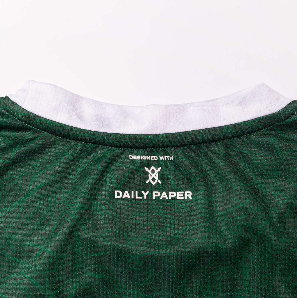 Three separate badges are currently available on an official basis from the club, but the potential is endless considering the many simpatico fan bases across the world, while the shirt designed in collaboration with Daily Paper will be worn with green shorts and white socks.