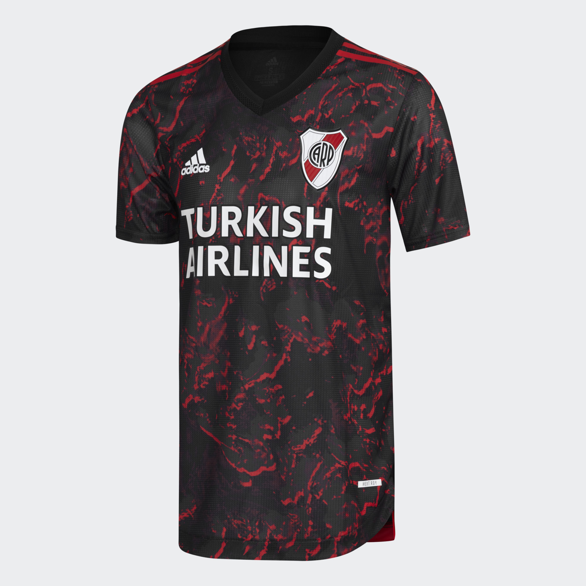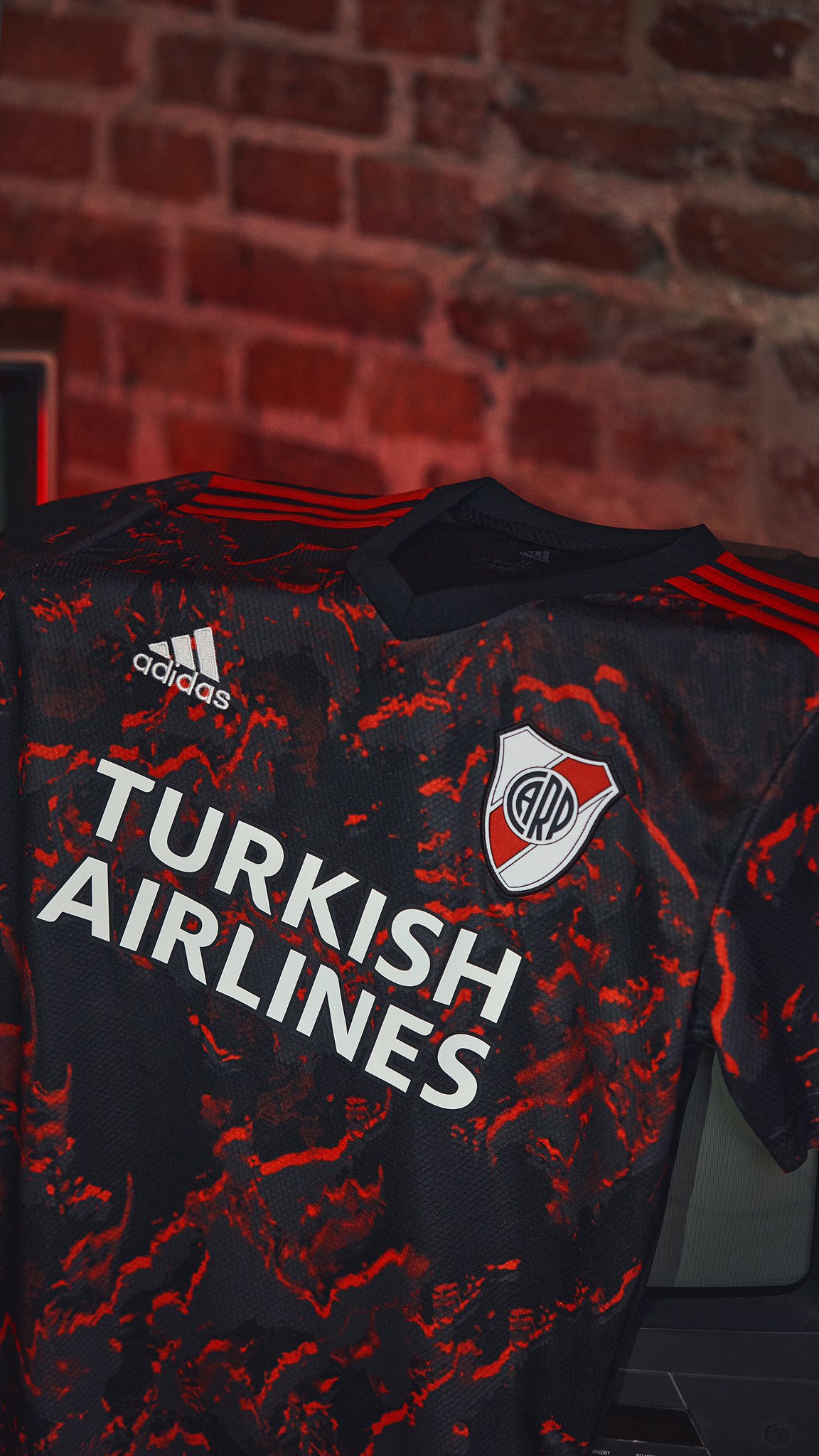 The German manufacturer’s iconic stripes are in red on the shoulders, reversing the effect of the red shorts and socks and their black detailing, and the kit will be debuted today against Central Córdoba.