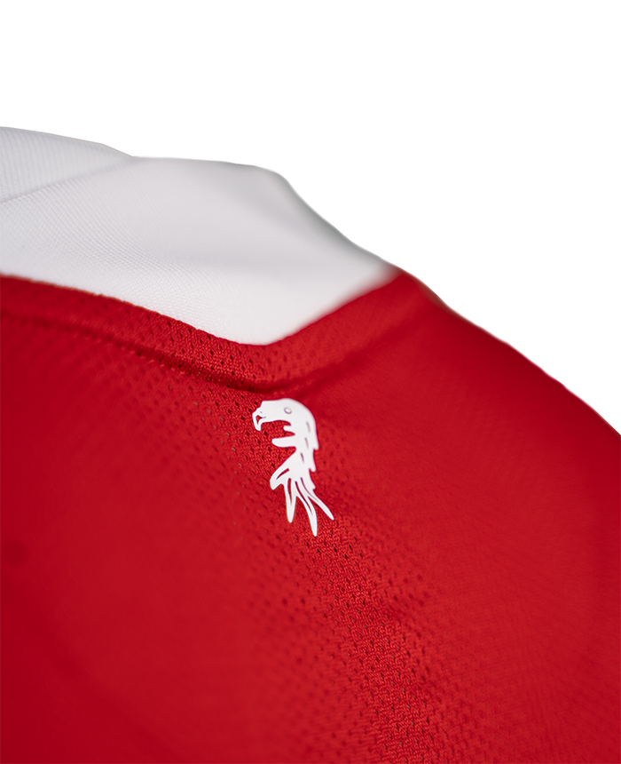 Said crest appears in black and white and the club personalisation on the back, the stylised v-neck, the cuffs, the side-of-torso trim and the partner branding - apart from the full-colour main sponsorship logo - all appear in white.
