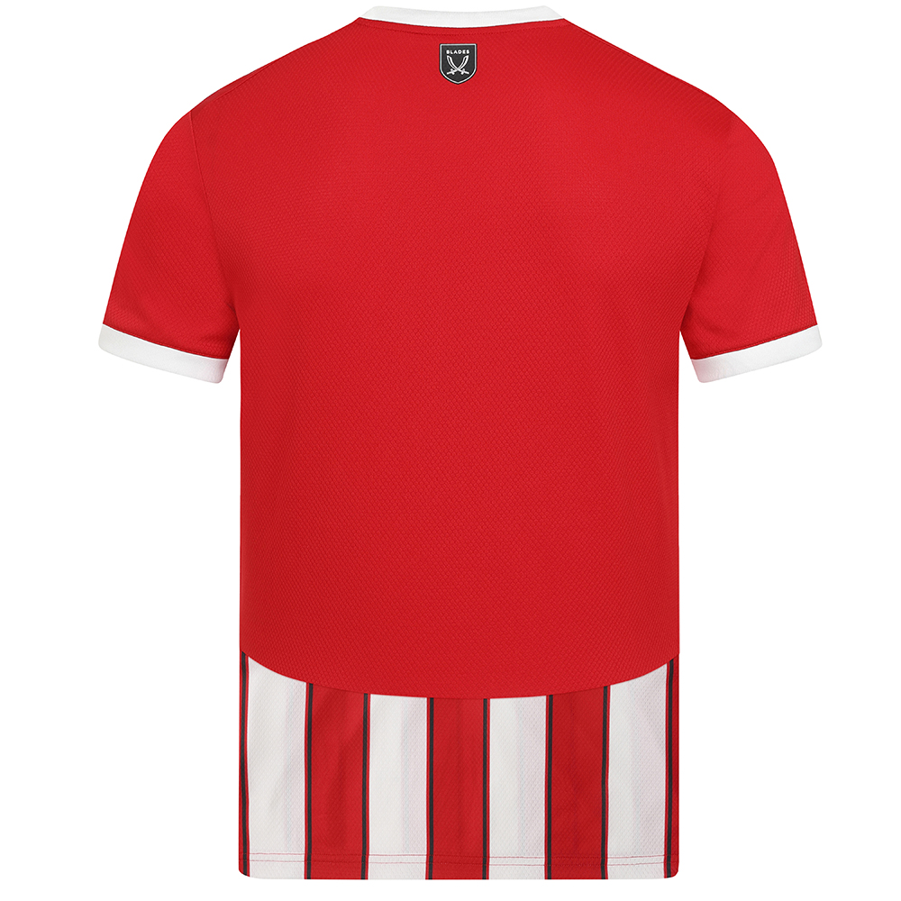 The red and white stripes have black pinstripe detailing and this years collar is a white round neck. The adidas logo stitched on the right-hand side and the SUFC crest positioned on the left.