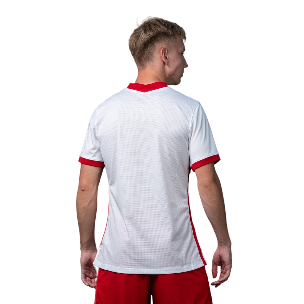 With its main sponsorship branding contrasting, the only departure from the basic colourway is the inclusion of the gold stars above the crest, and the shorts and socks which complete the kit are red and white with red tops respectively.