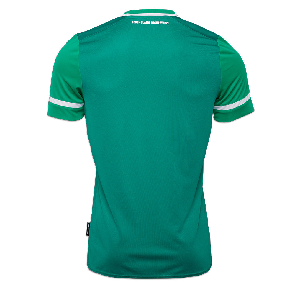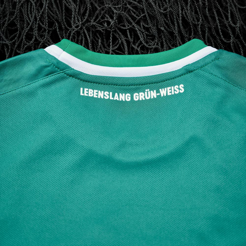 The jersey also features a crew-neck collar and cuffs in green and white. To complete the look, ‘Lebenslang grun-weiss’ (green-white for life) is added as a neck sign off on the back.