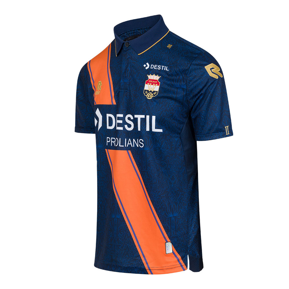 Willem II’s new secondary shirt has a “royal” theme, in navy blue with a bordered orange sash.