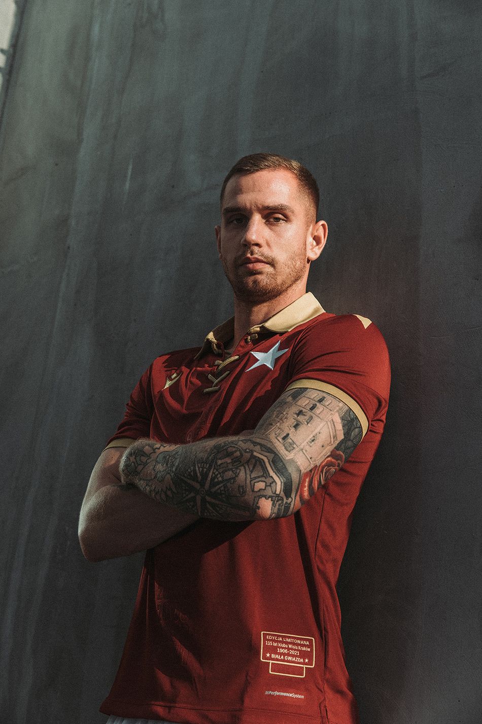 The Macron design features a lace-up neck, the lace of which matches the gold collar, cuffs and “Hero” logos, while the focal point is the famous white star - the “Biala Gwiazda” - from the club crest.