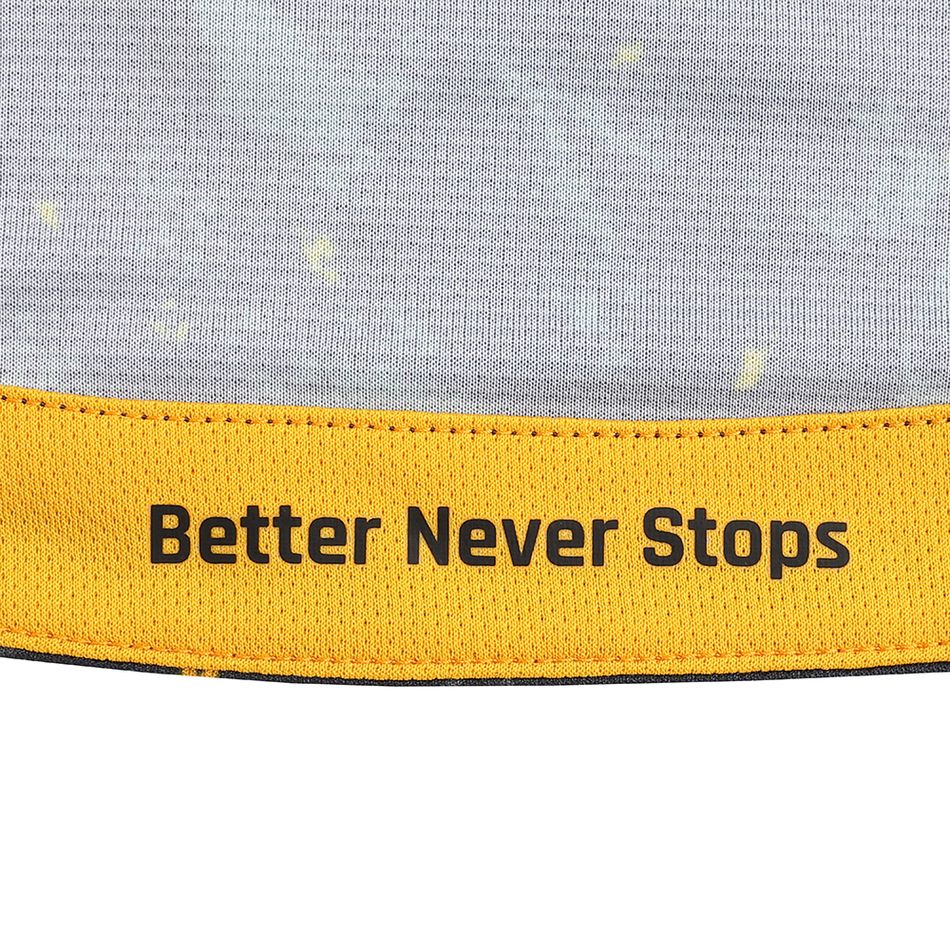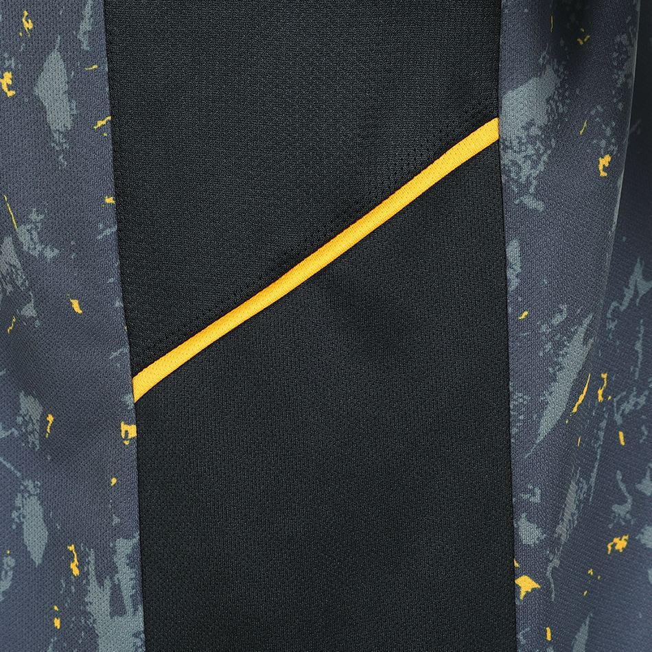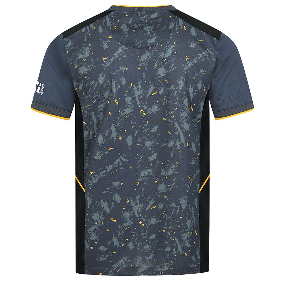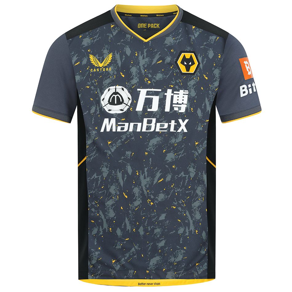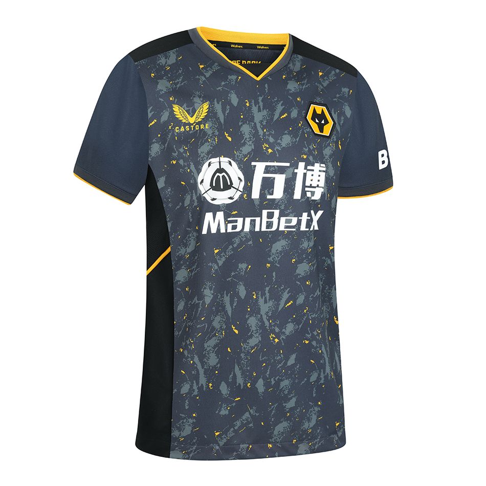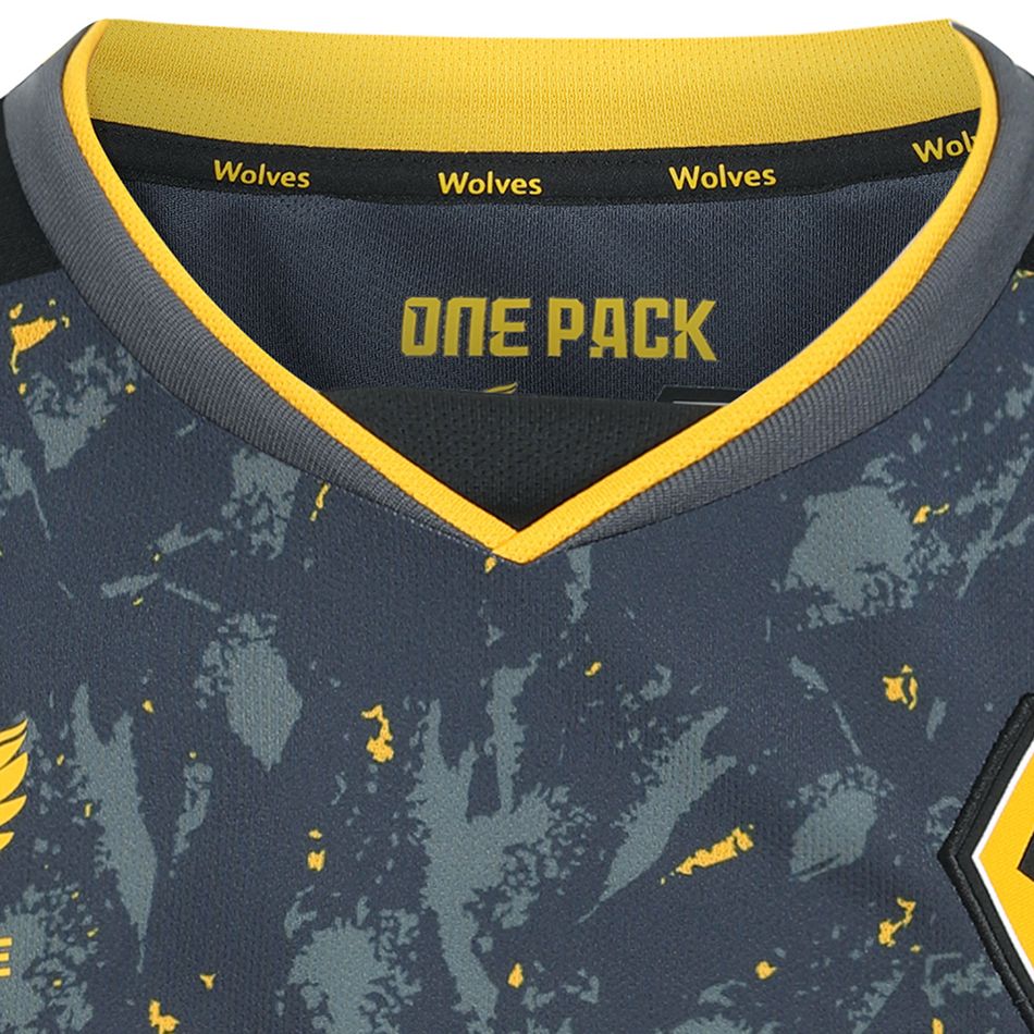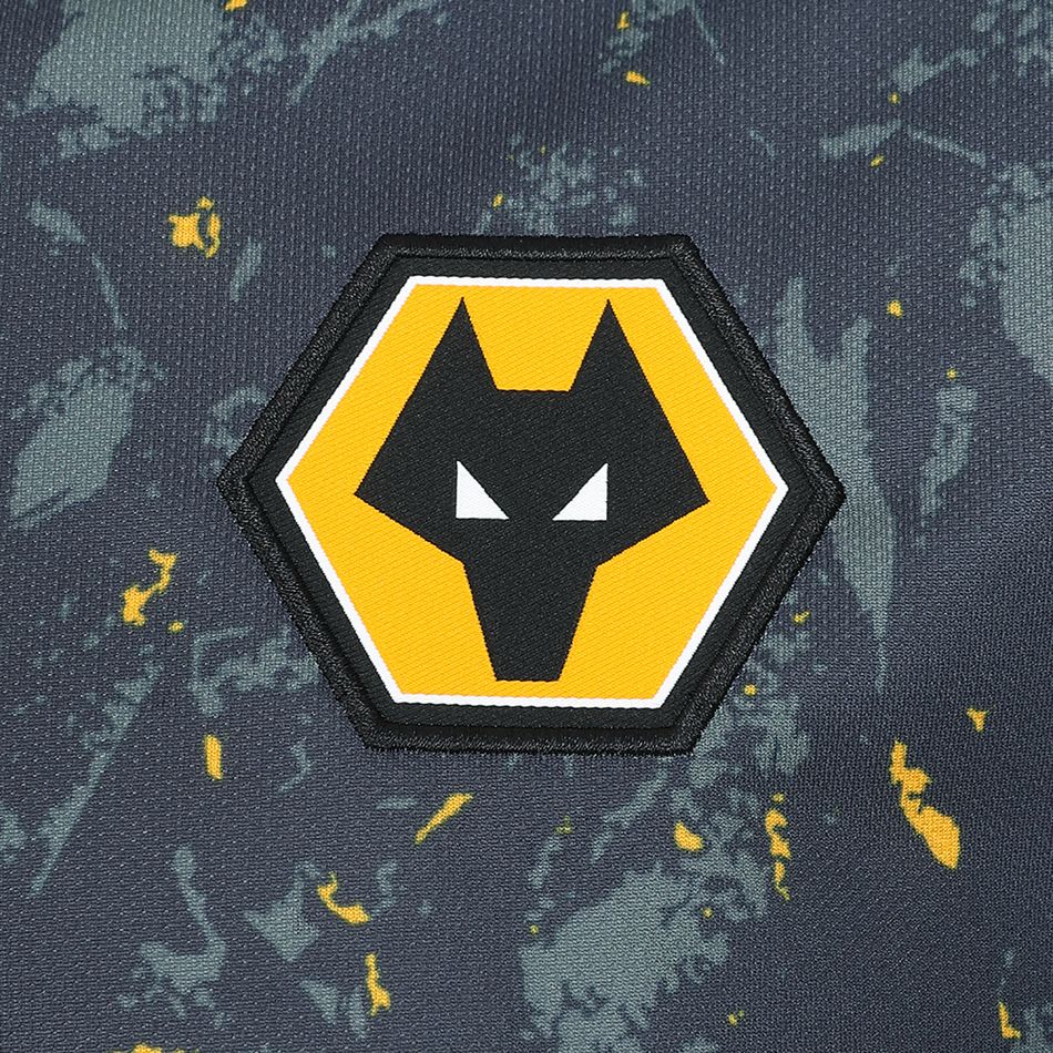 The club’s first ever Castore away jersey sees tonal greys and blacks combine and brought to life with flecks of Wolves gold through an all-over pattern.