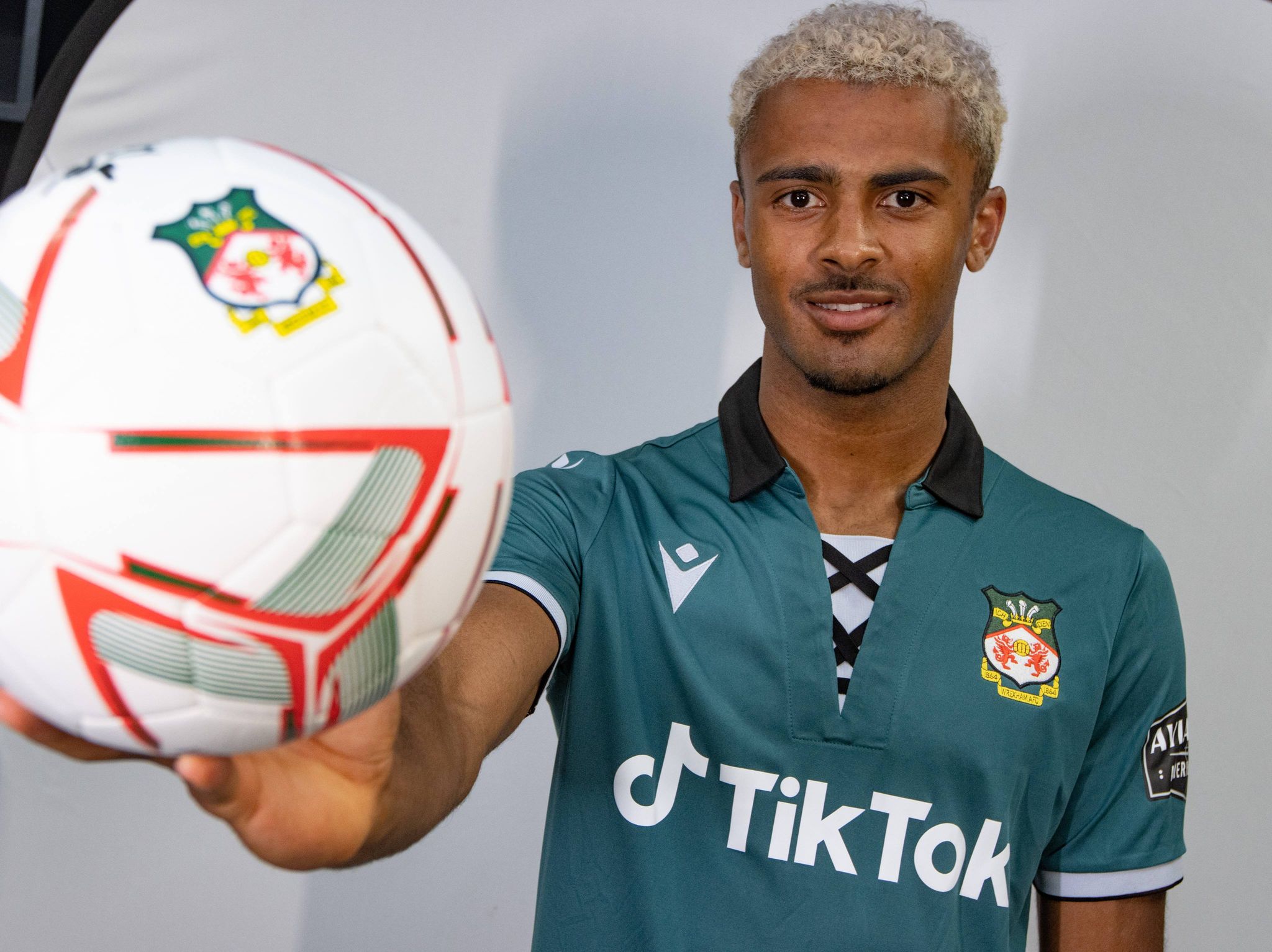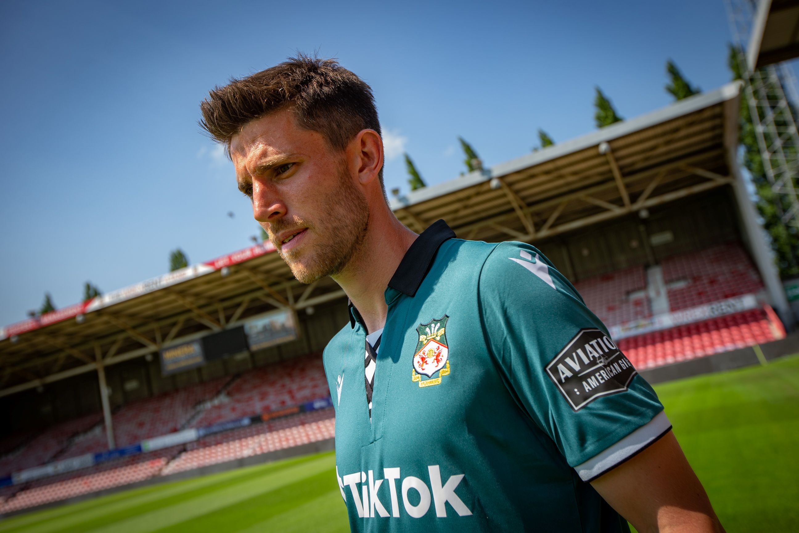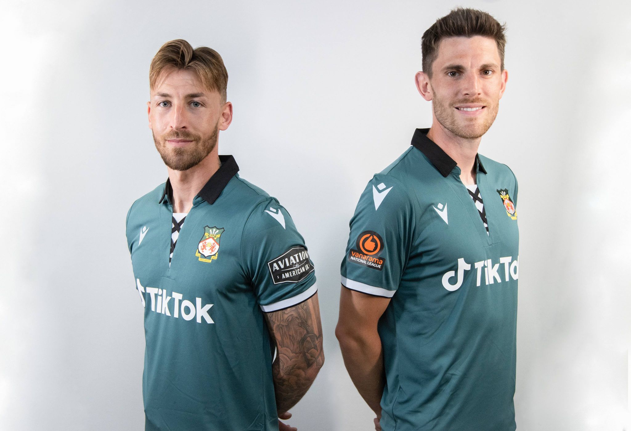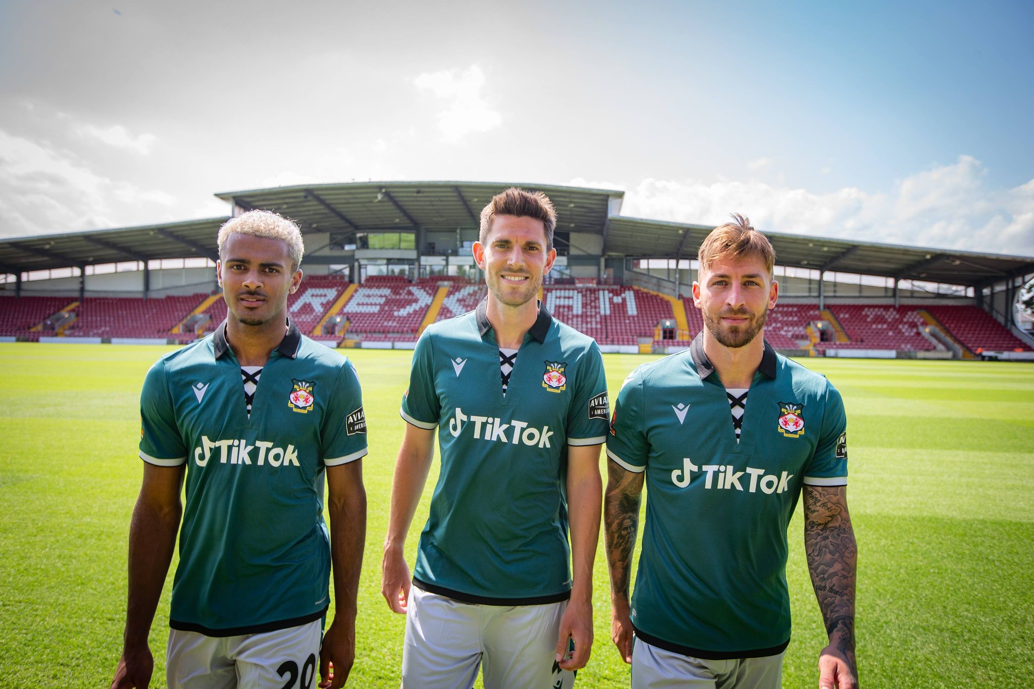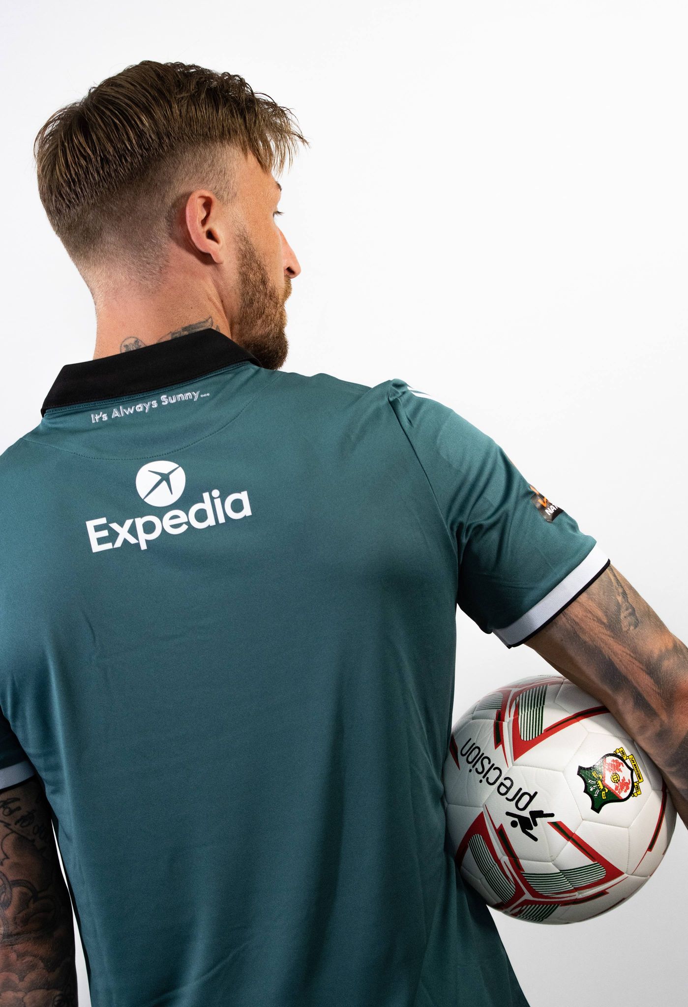 Wrexham AFC revealed their new Macron away shirt for the 21/22 season, featuring newly-signed partners, TikTok, Aviation Gin, Expedia and a personal touch from Rob McElhenney.