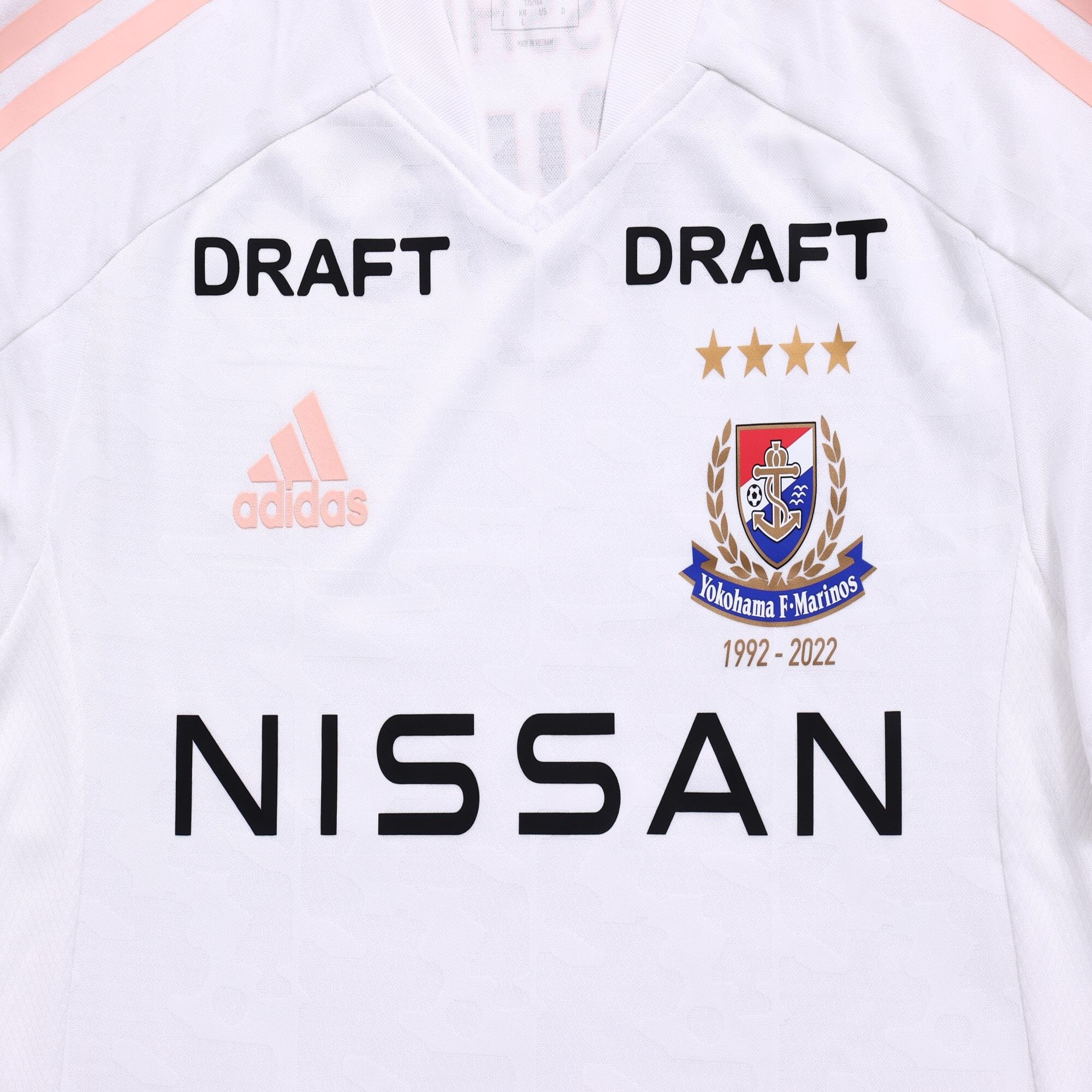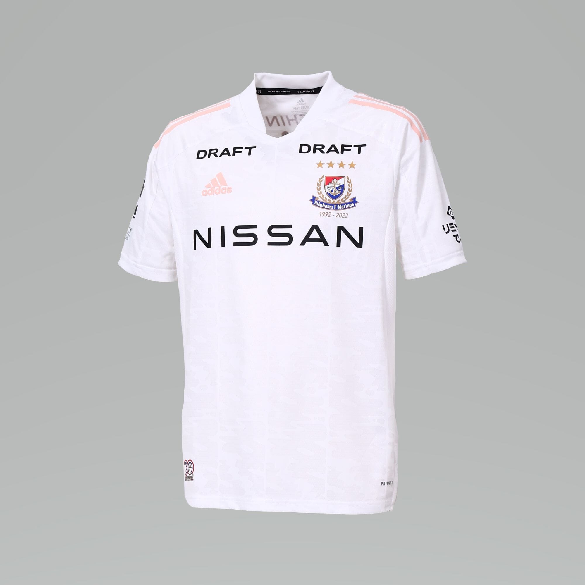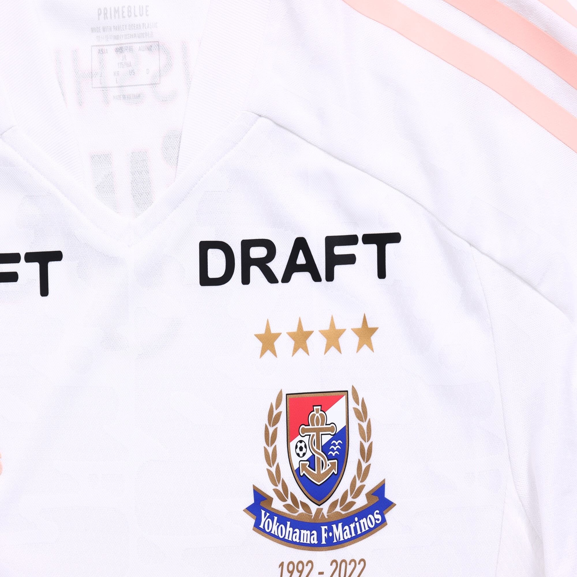 In white with pink detailing in the form of the adidas branding, the new release marks the 30th anniversary of J-League participation by way of detailing under the full-colour crest (“1992-2022”) and on the hem.