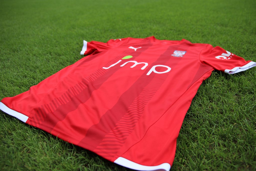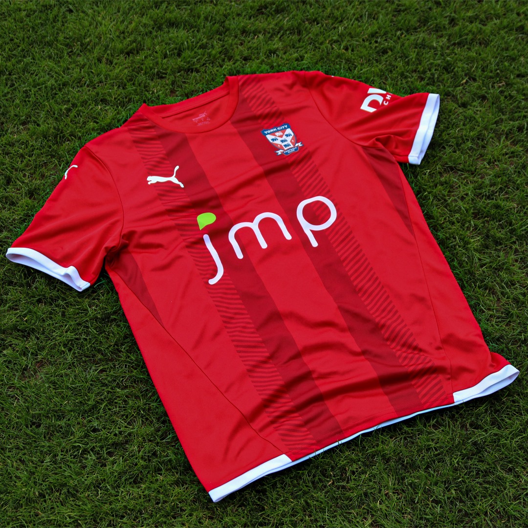 Featuring a bespoke Puma design, the home shirt features a traditional red with white accents - adorned with JMPackaging as front of shirt sponsor, York Gin as back of shirt sponsor and DWA Architects as sleeve sponsor.