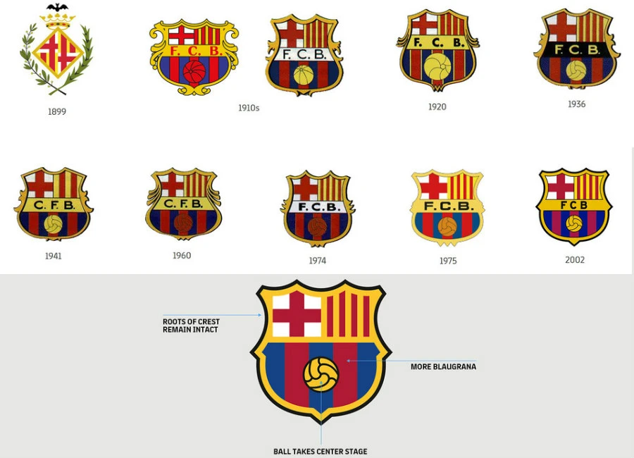 This evolution stays faithful to the historical elements of the crest: the city, Barcelona; the country, Catalonia; the club, the 'blaugrana' colours; and the ball.