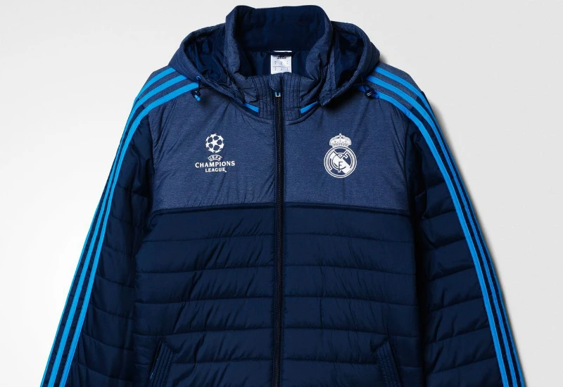 You can cheer Juve on with this adidas Juventus FC UCL Padded Jacket. It has their team logo and a tournament logo on the chest, and features warm padding and fleece details on the inside.
