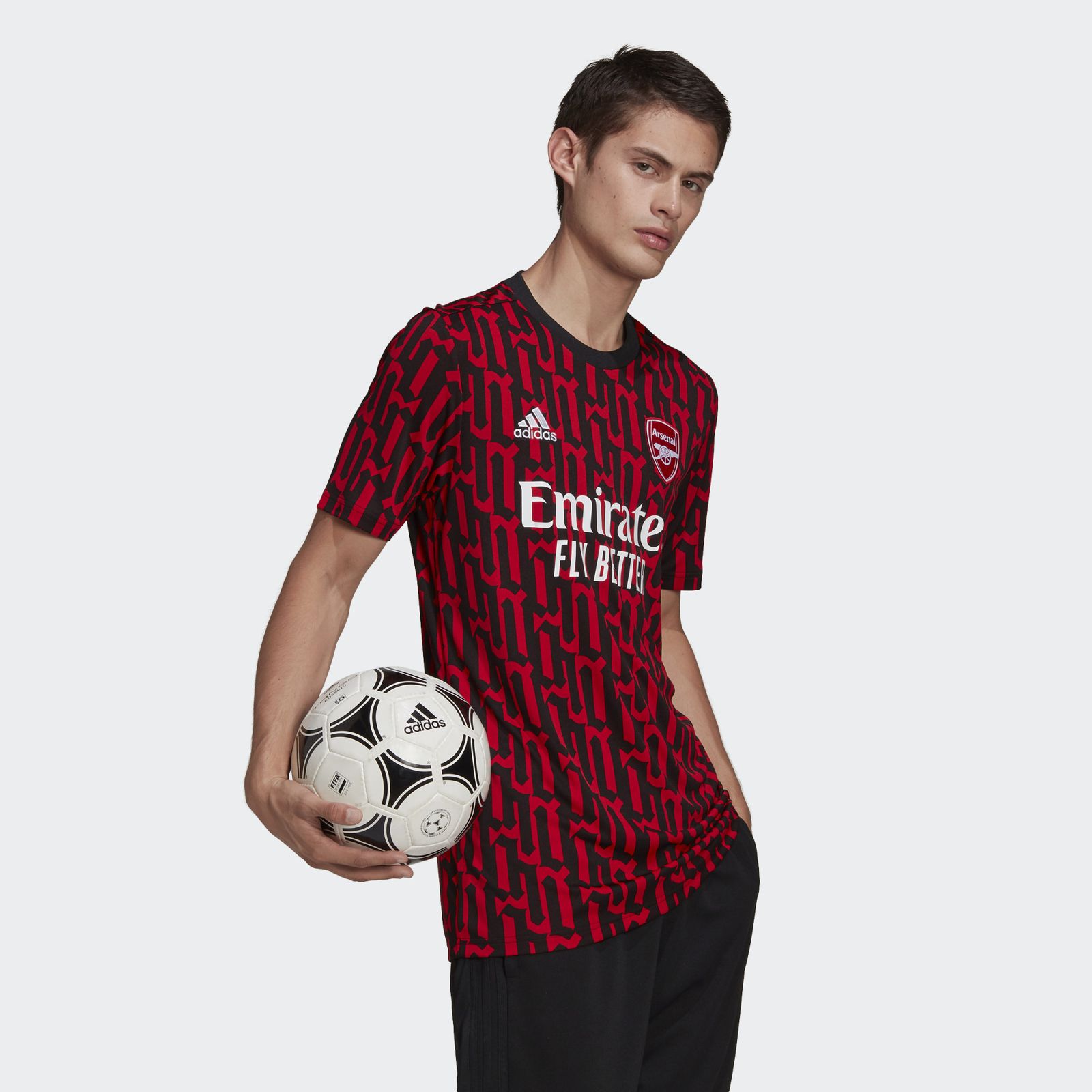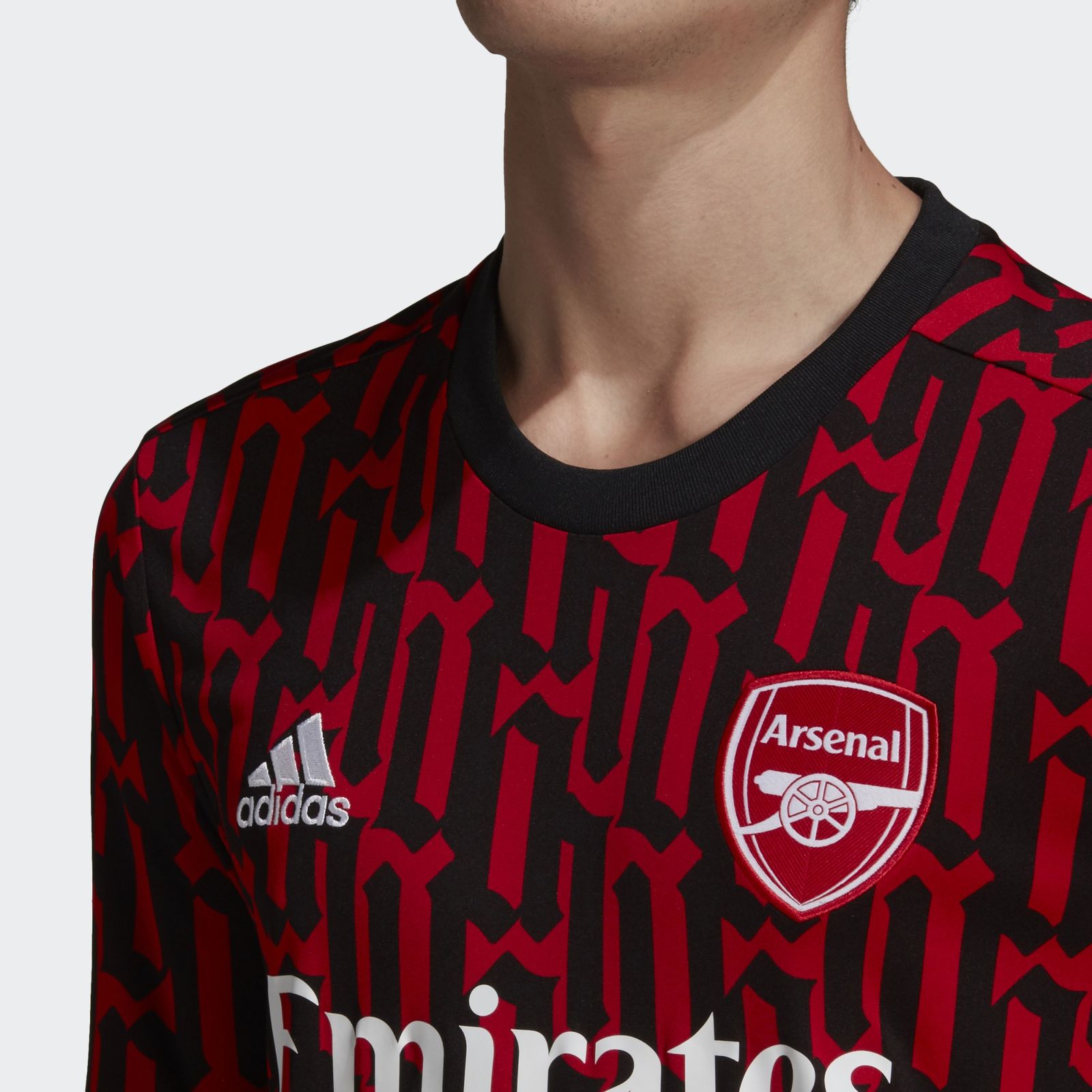 This adidas Arsenal Pre-Match Jersey shows off a graphic inspired by the gothic lettering on a classic club badge.