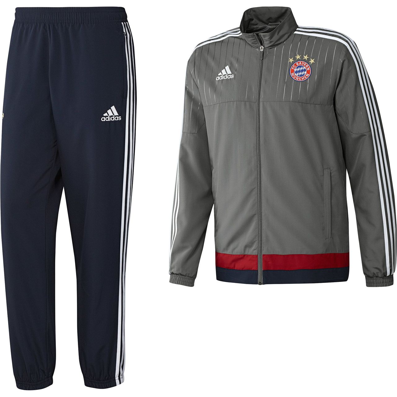 Before der FCB press their opponents into defeat, they wear a version of this adidas Bayern Munich Presentation suit. Just like the one they wear before the match, it features their team badge and convenient ankle zips.
