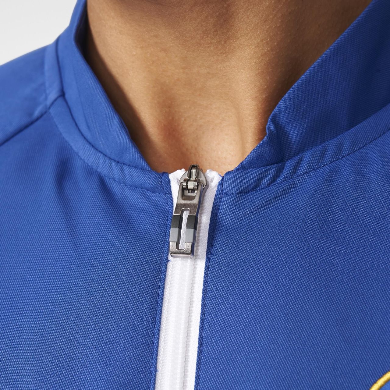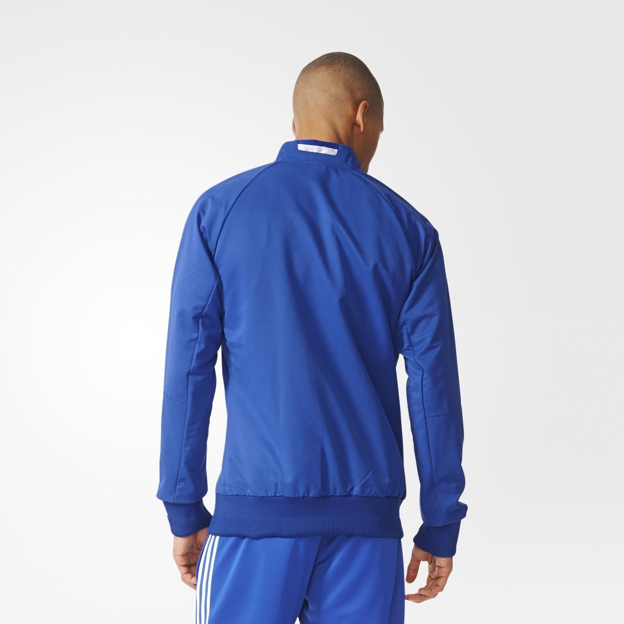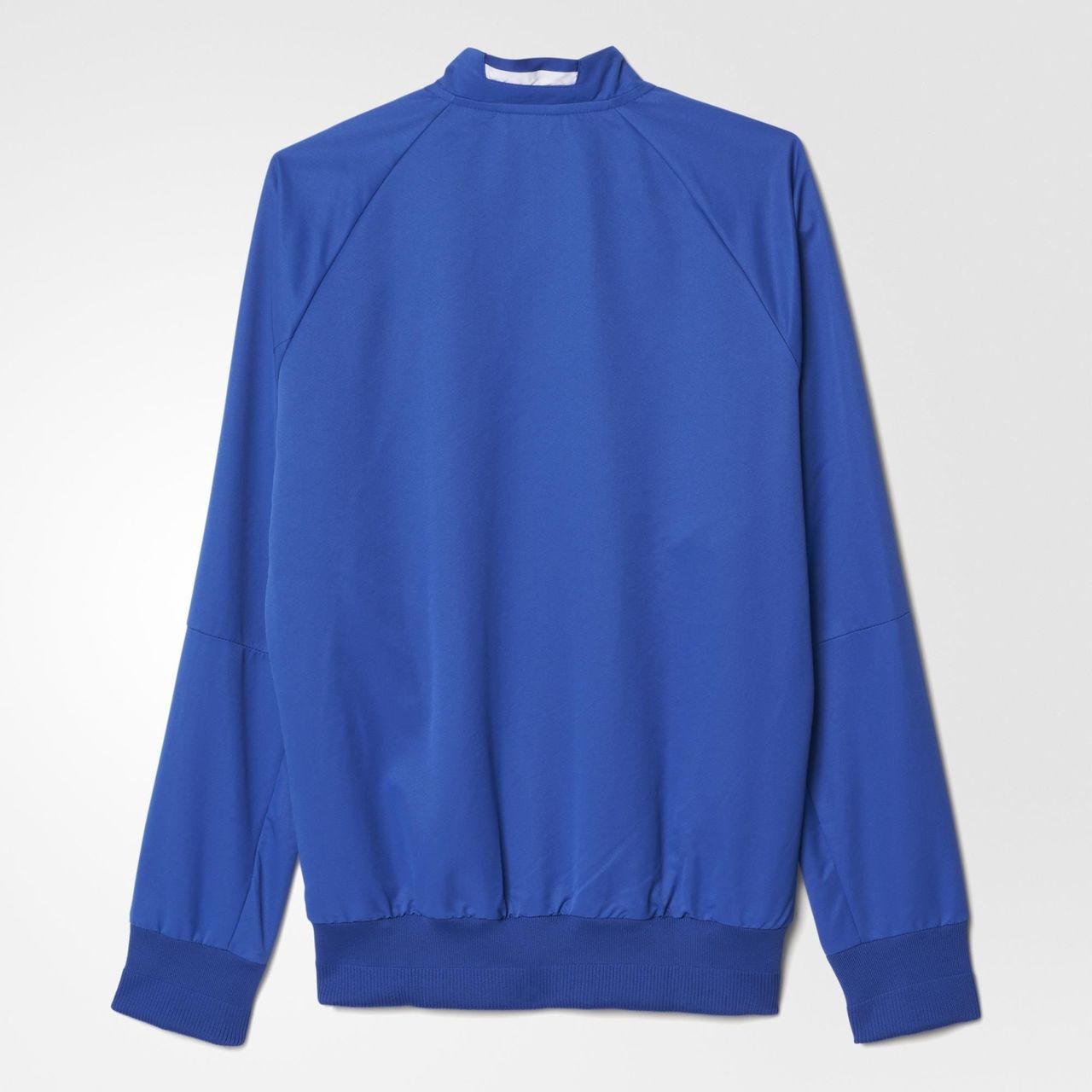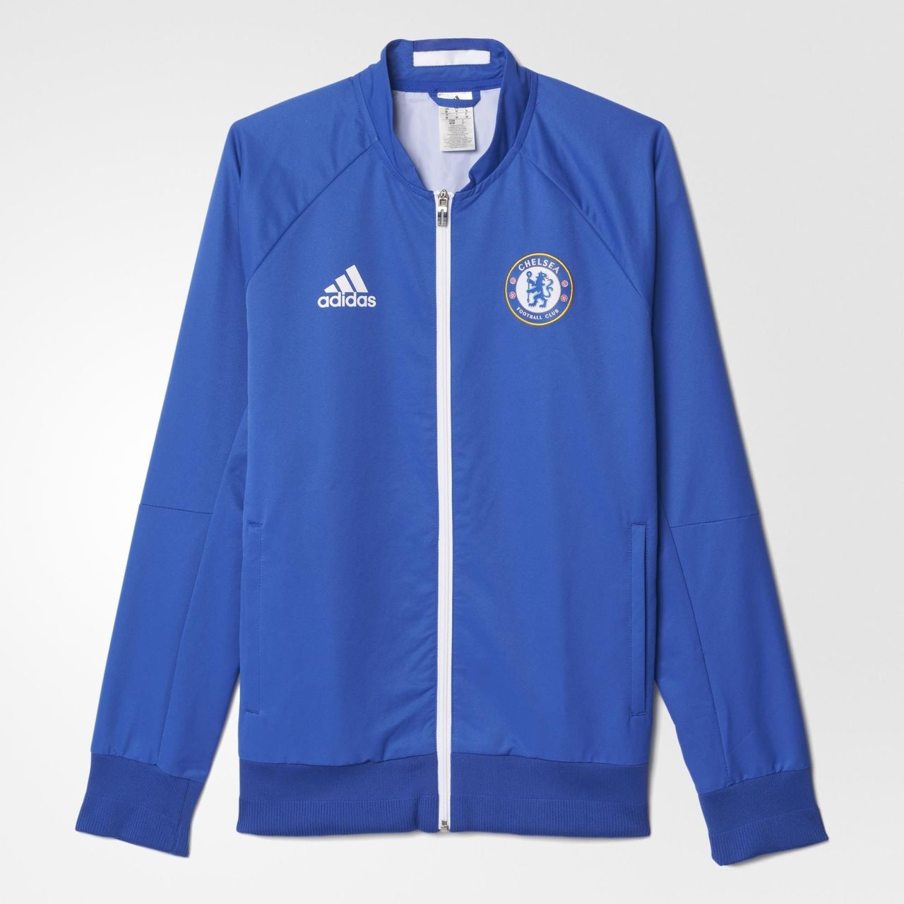 This is the adidas Chelsea FC Anthem Jacket. Supporters can now be heard in the adidas football Anthem Jacket specially made for their club. Featuring the iconic Chelsea FC badge on front.