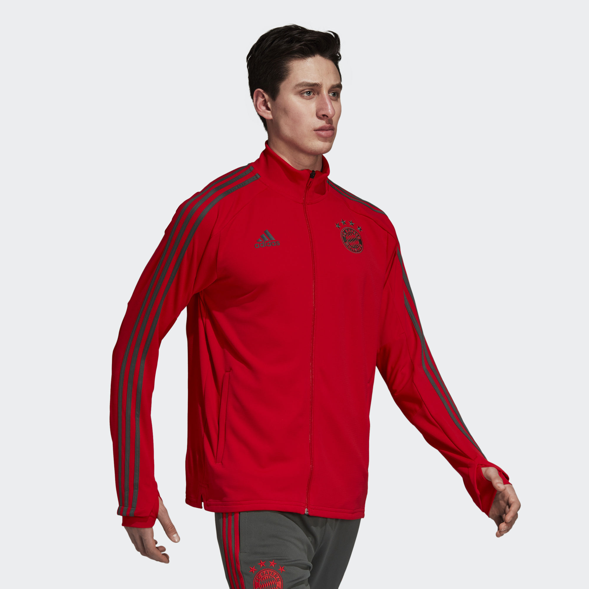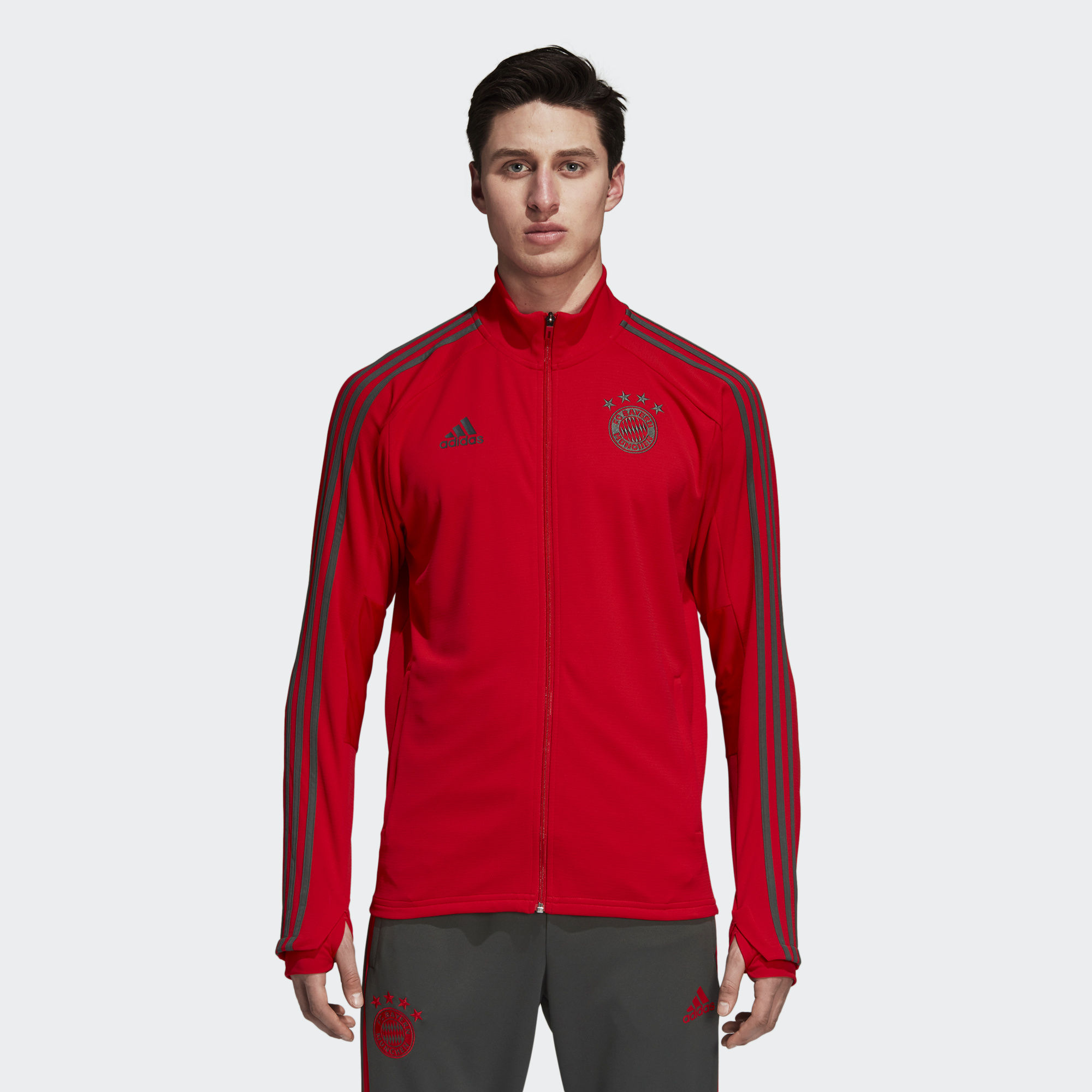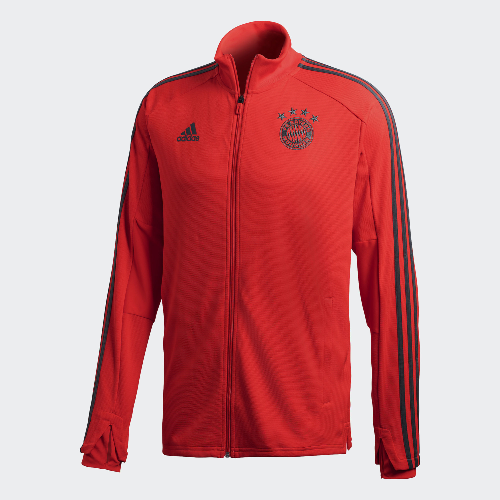 Trophies might get lifted in the stadium, but they're landed from the training ground. This Adidas FC Bayern Training Jacket is like the one that FC Bayern wear as they fight for the right to call themselves Germany's greatest. It's made of slim-fitting fabric, with thumbhole sleeves for extra coverage when the temperature drops.