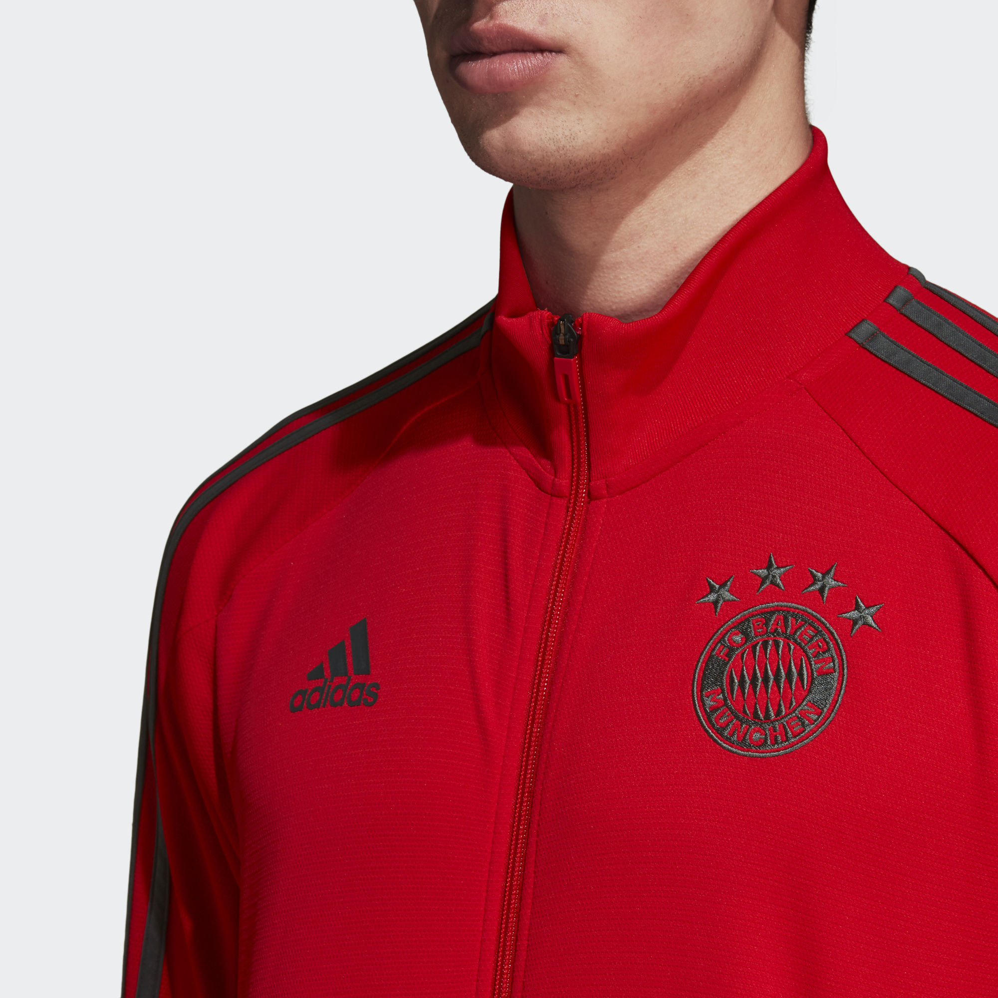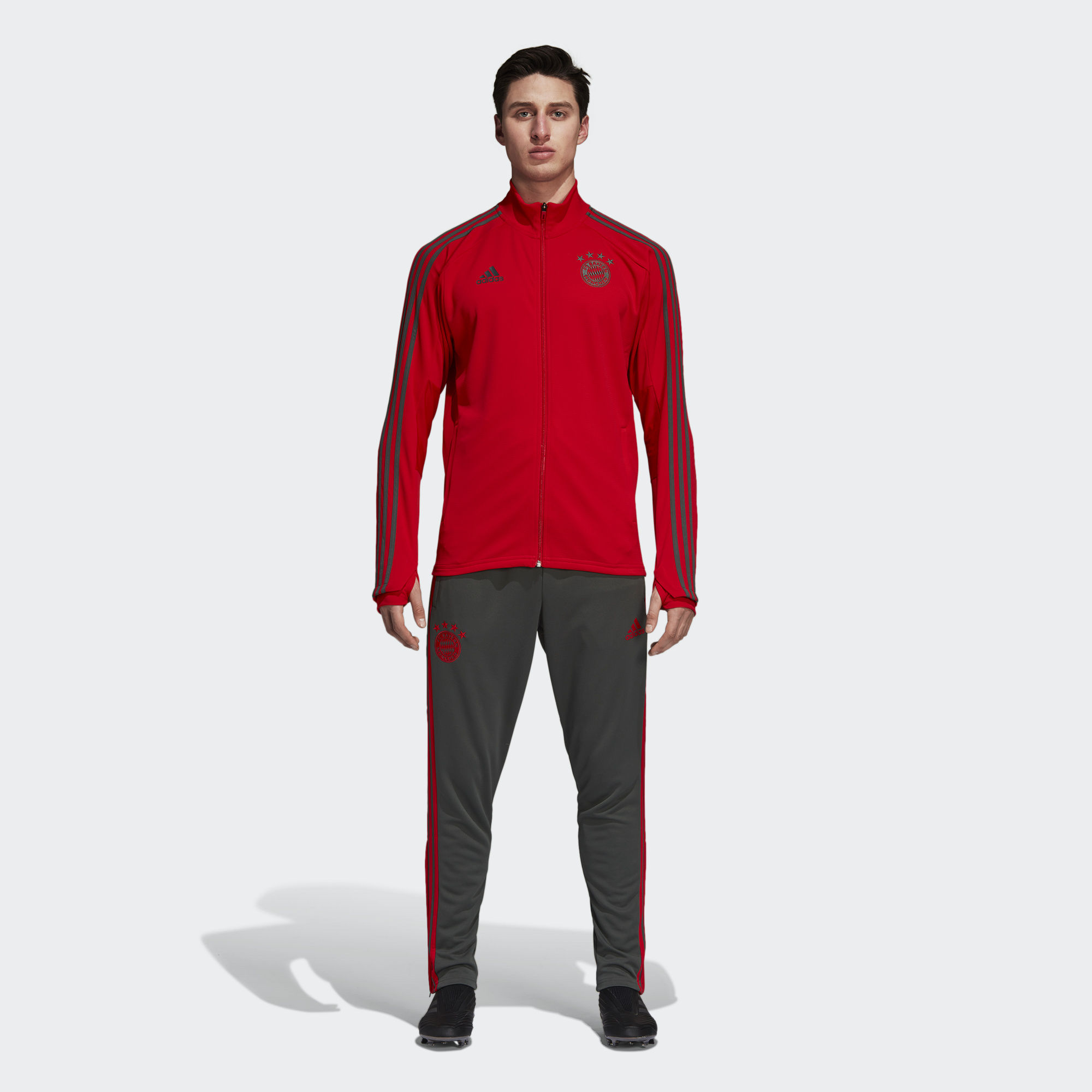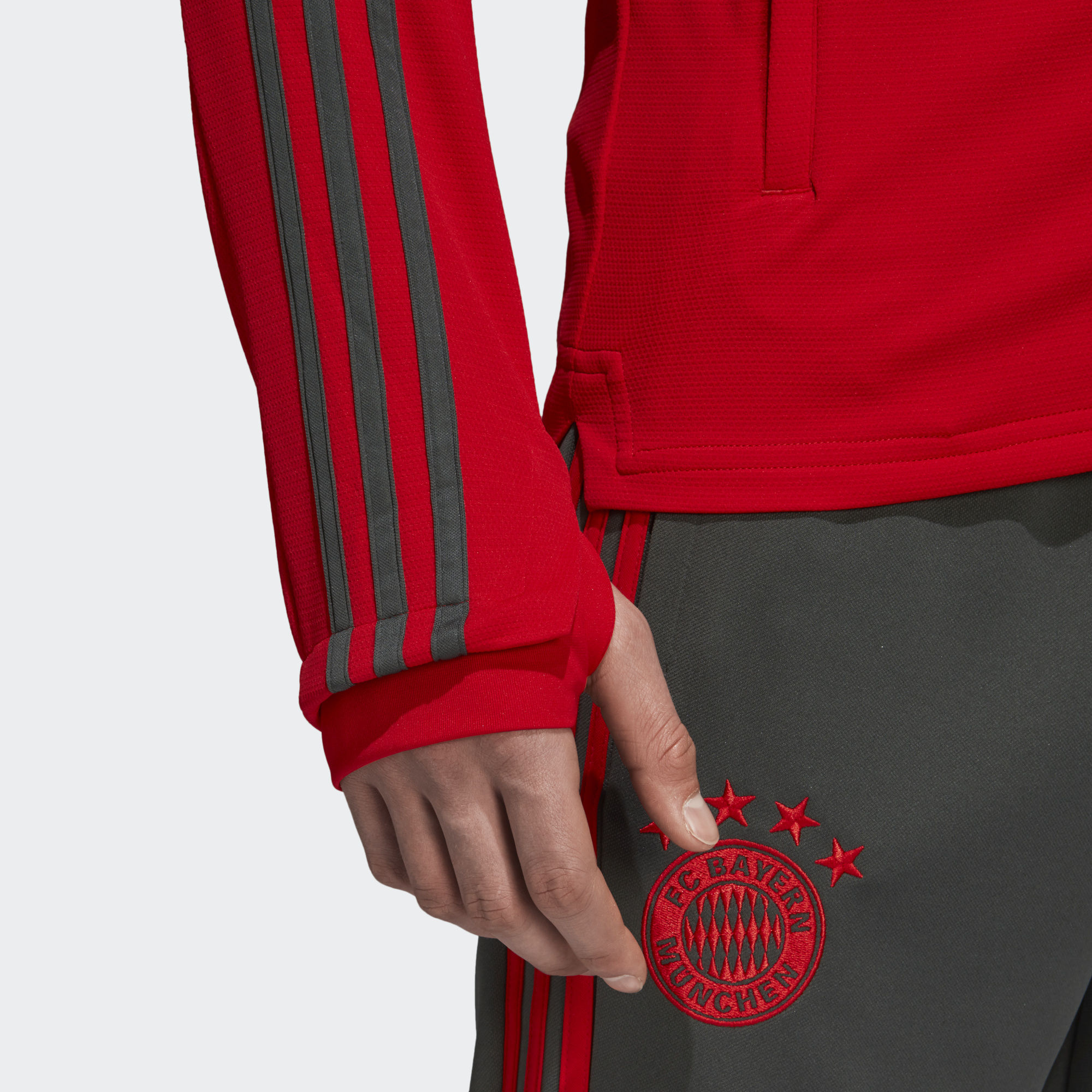Trophies might get lifted in the stadium, but they're landed from the training ground. This Adidas FC Bayern Training Jacket is like the one that FC Bayern wear as they fight for the right to call themselves Germany's greatest. It's made of slim-fitting fabric, with thumbhole sleeves for extra coverage when the temperature drops.
