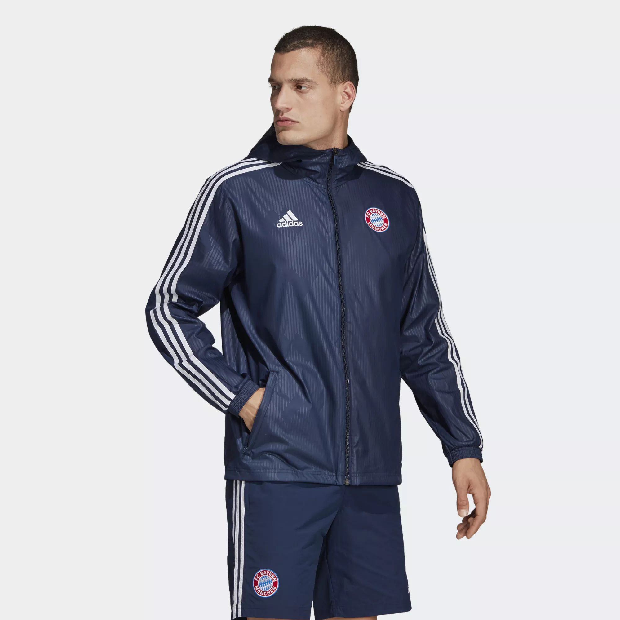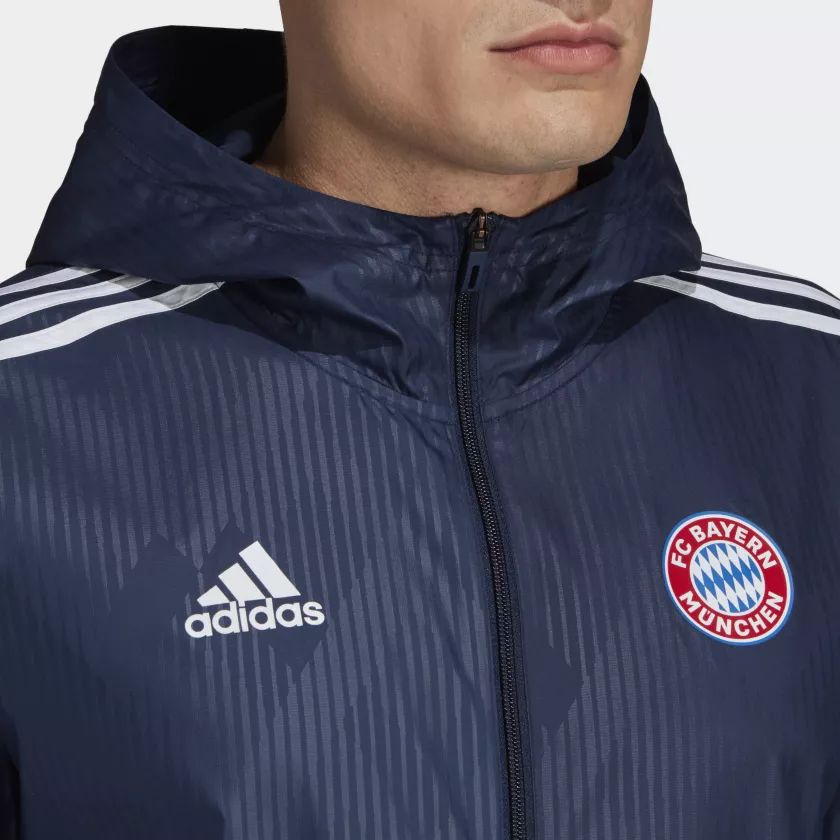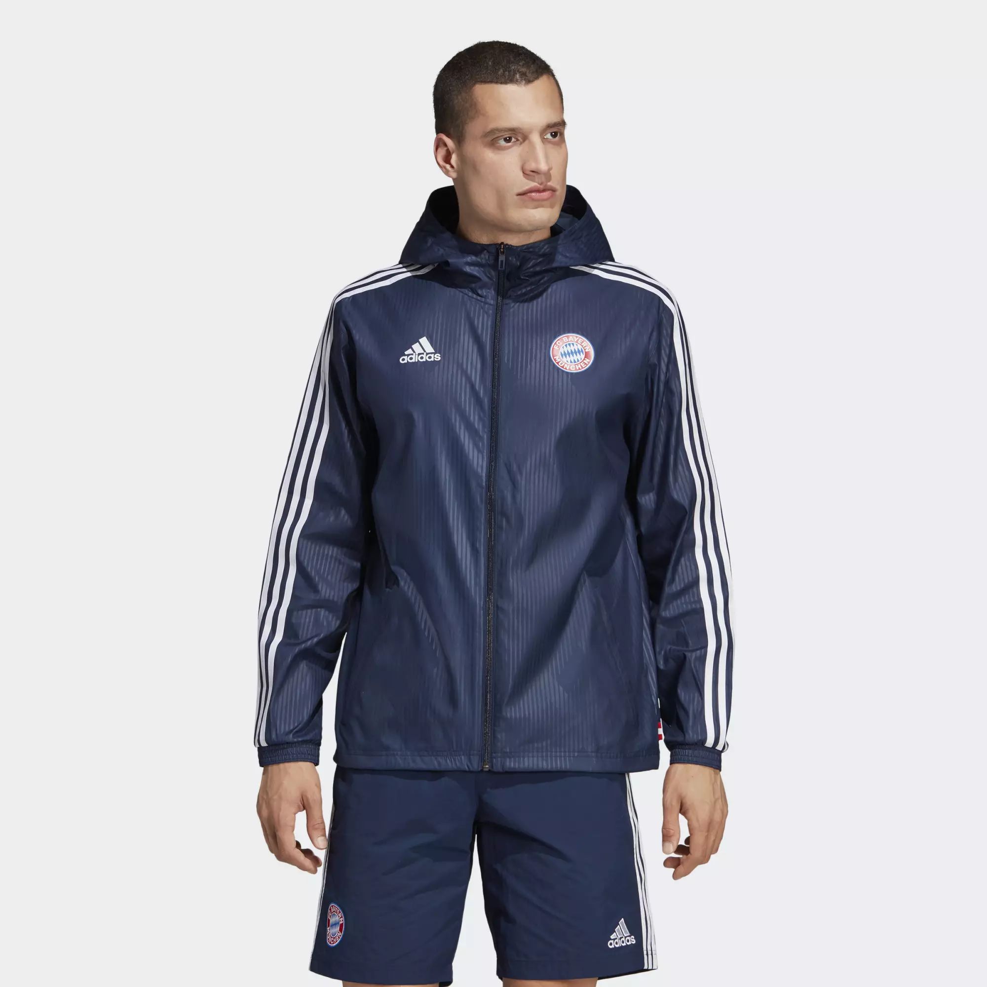 This FC Bayern windcheater jacket gives you a light layer to pull on when the temperature drops. Taking cues from the home kit, it's designed with subtle diamond embossing. The jacket is made of hard-wearing ripstop, with zip pockets and a fully lined hood.