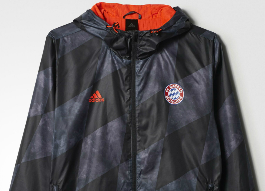 Built with lightweight polyester, the jacket's drawcord hood, elastic cuffs and droptail hem provide full coverage from the weather. It's finished with an FC Bayern München crest.