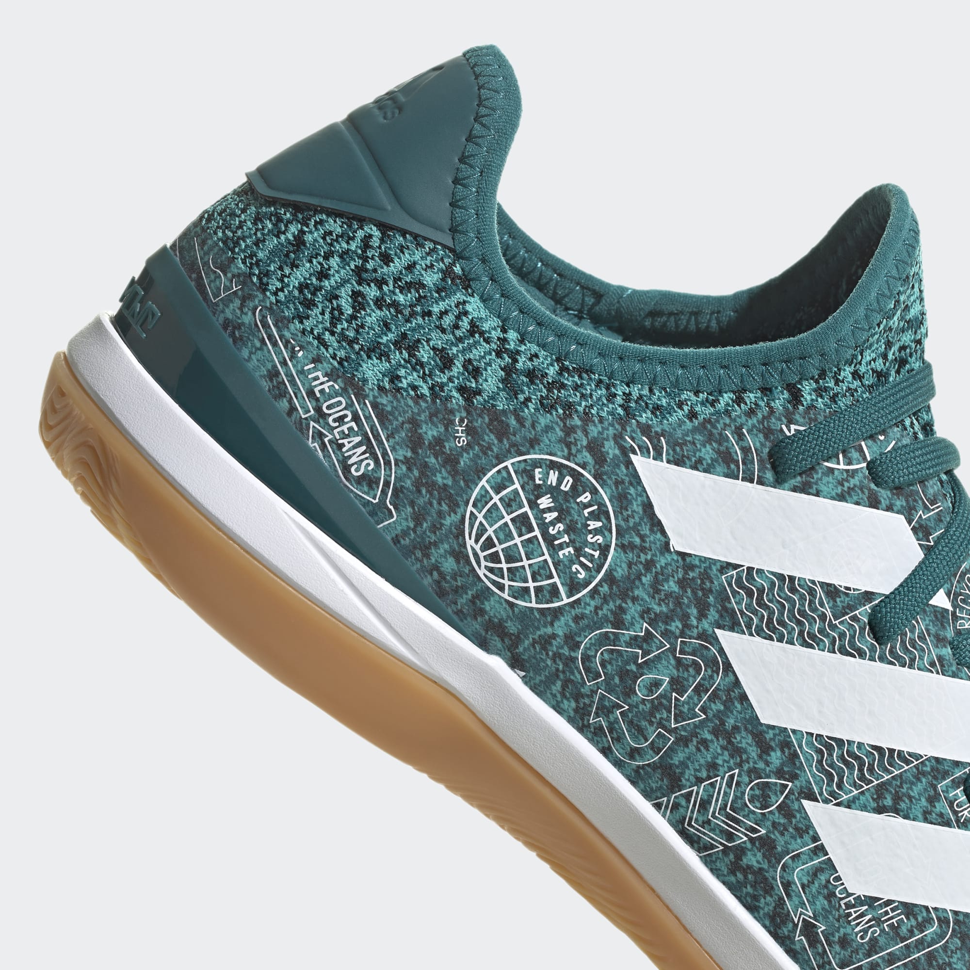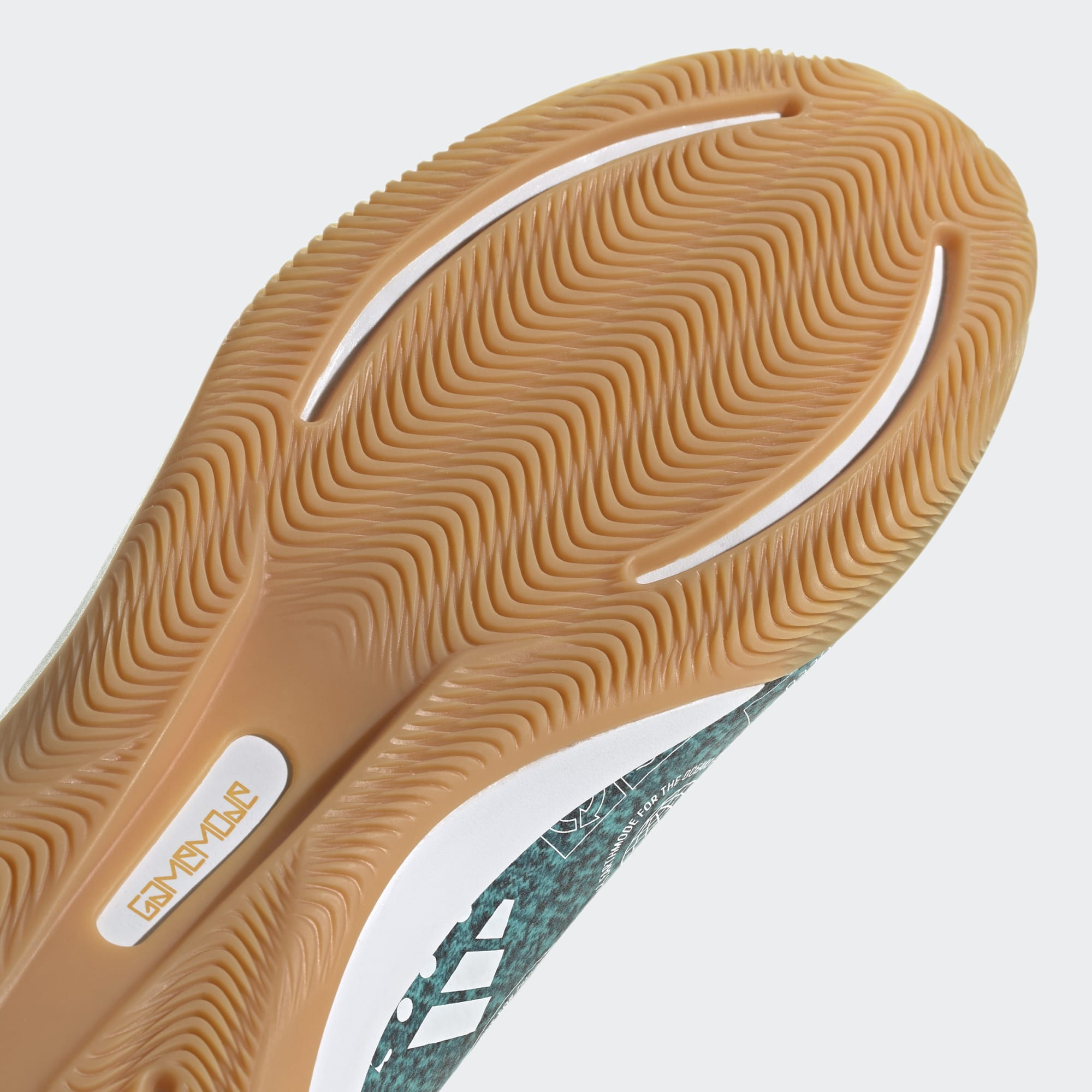 Designed to fit a wide range of foot shapes, these adidas Gamemode Knit Indoor Shoes - Legacy Teal/Cloud White/Mint Rush are built for comfortable play.