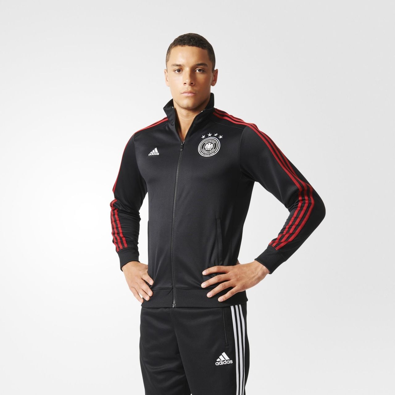 Die Mannschaft are the masters of control, and this adidas Germany Track Top shows everyone you're a fan. Features Germany's proud badge on the chest and 3-Stripes on the sleeves.