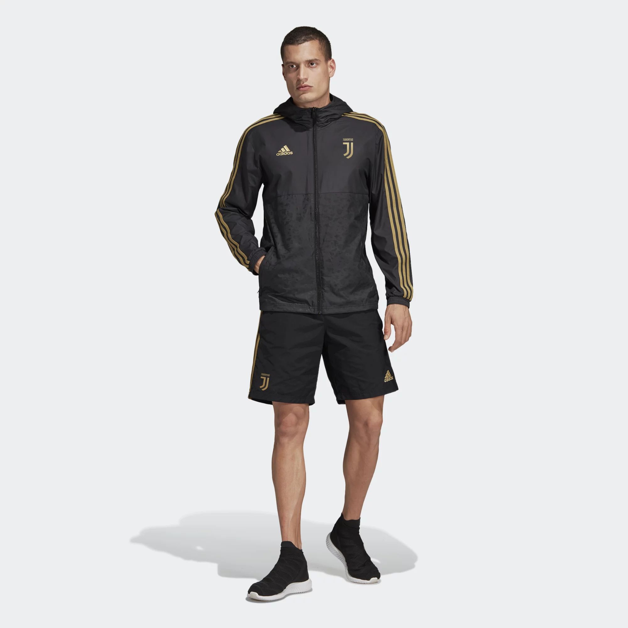 This Juventus wind jacket gives you a light layer to pull on when the temperature drops. It's made of hard-wearing ripstop, with zip pockets and a fully lined hood. The Juventus crest is dipped in gold, a tribute to the club's dominance.