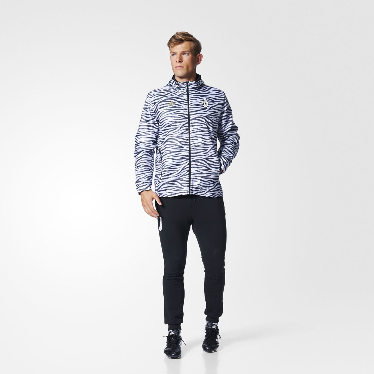 Inspired by Juve's iconic black-and-white kit, the jacket features an allover graphic and the club's recognisable badge.