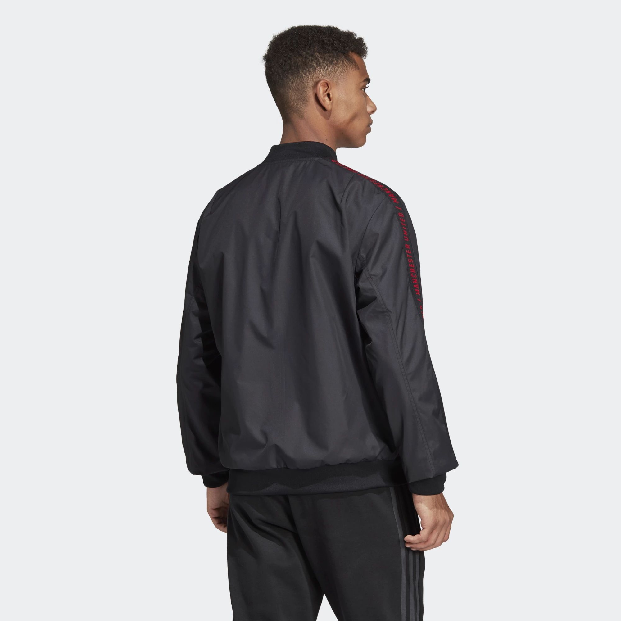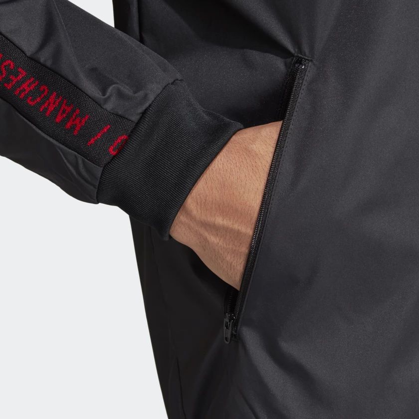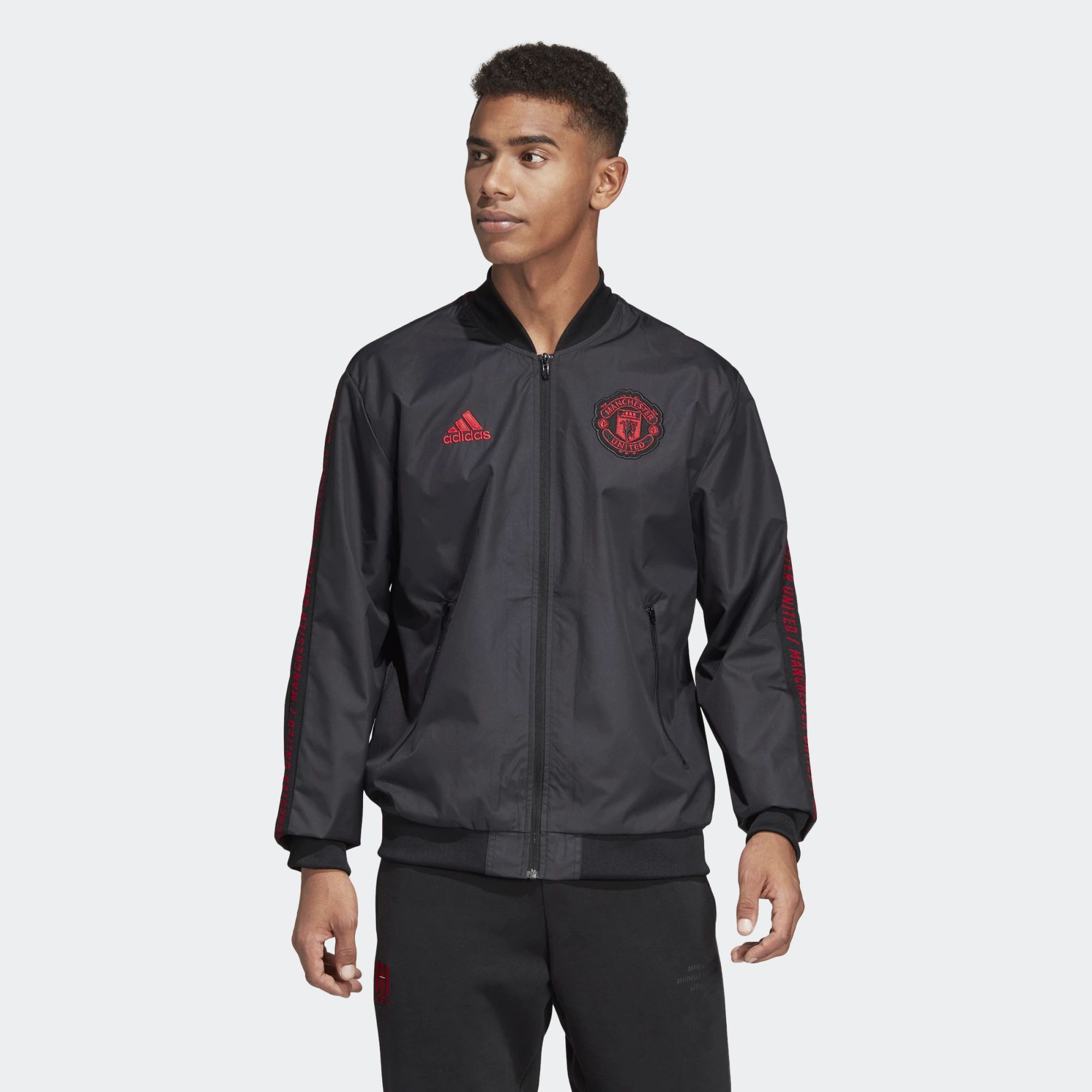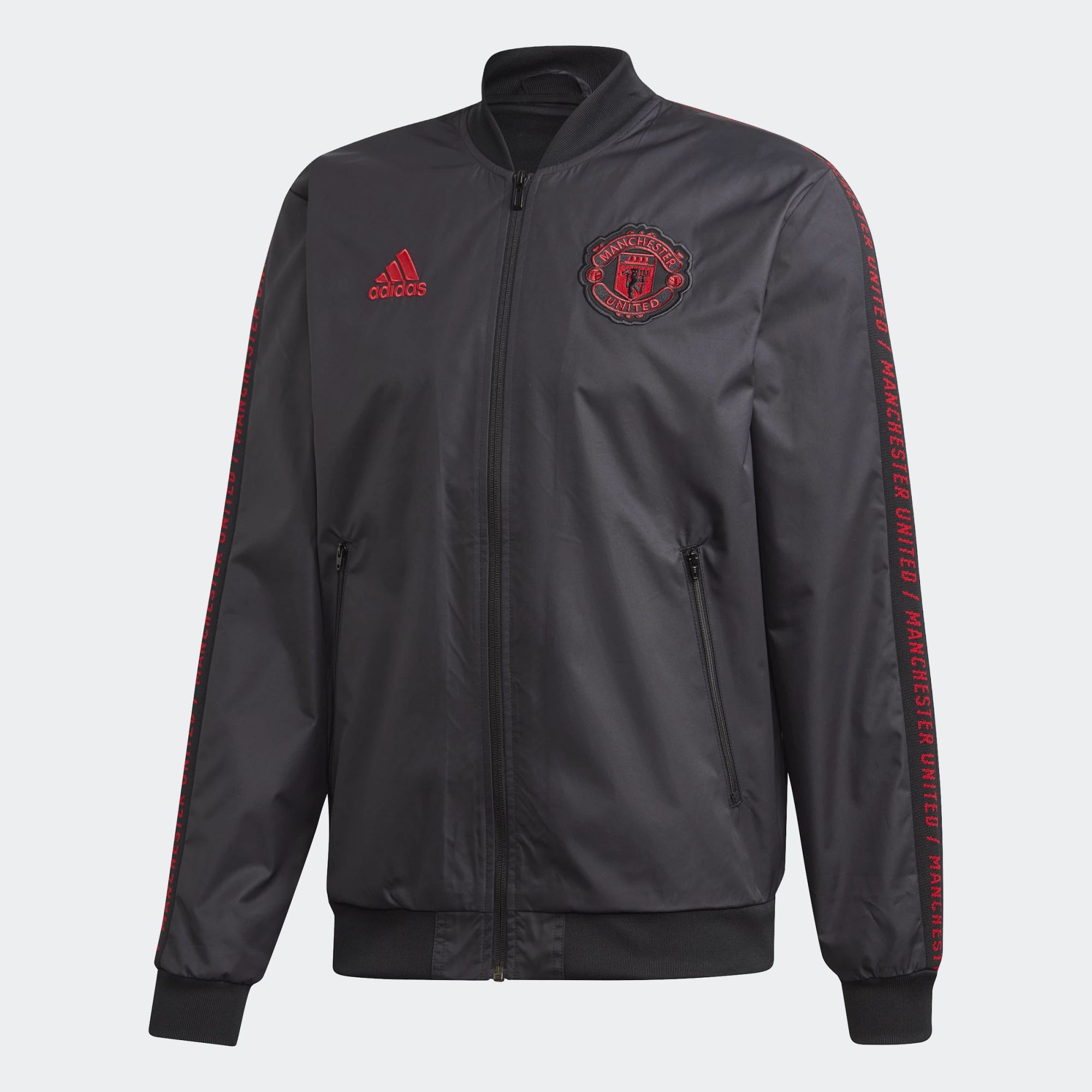 In the electrifying moments before kickoff, this Adidas Manchester United Anthem Jacket gives Man Utd a unified look. Show your support for the team with this comfortable bomber, which includes Manchester United name tape down the sleeves. It's made of piqué-lined twill, with zip pockets.